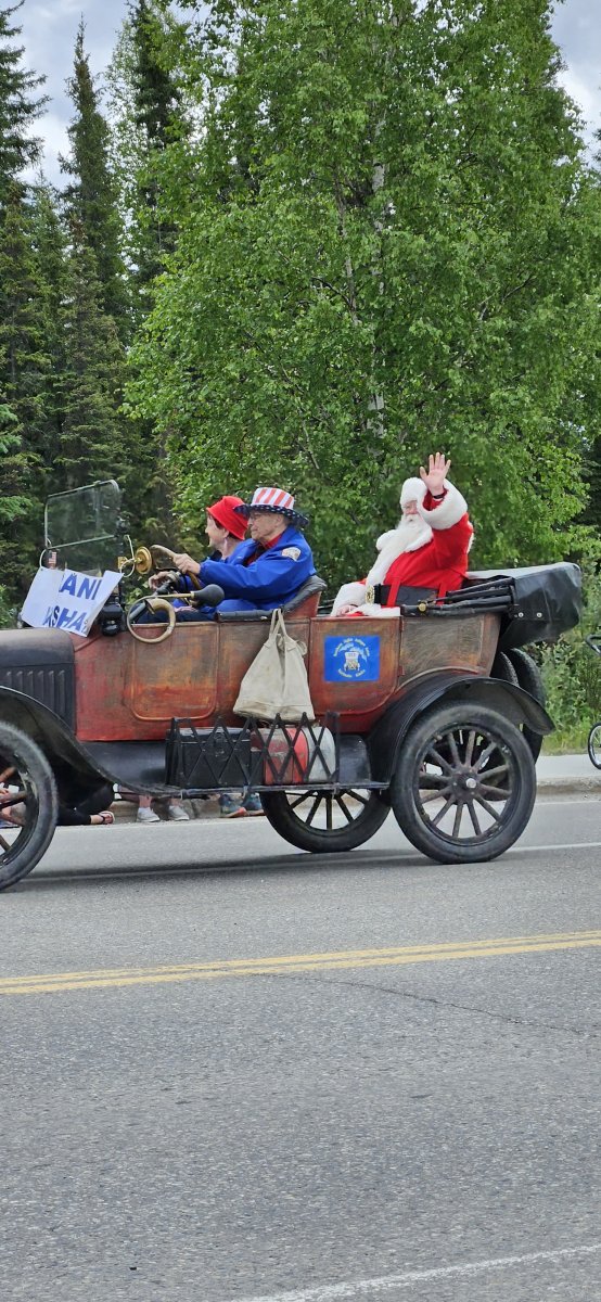 Den 4. Juli, den Nationalfeiertrag der USA verbringen wir in North Pole. Das ist eine kleine Stadt direkt neben Fairbanks. Da es in Alaska aktuell nie dunkel wird, gibt es leider kein Feuerwerk. Dafür eine Parade mit Grinch und Samichlaus. Dank des kalten Wetters werden wir an diesem Tag weitgehend von Mücken verschont. Gemäss Aussage der Einheimischen ist die Mücke übrigens der Staatenvogel von Alaska 😊.