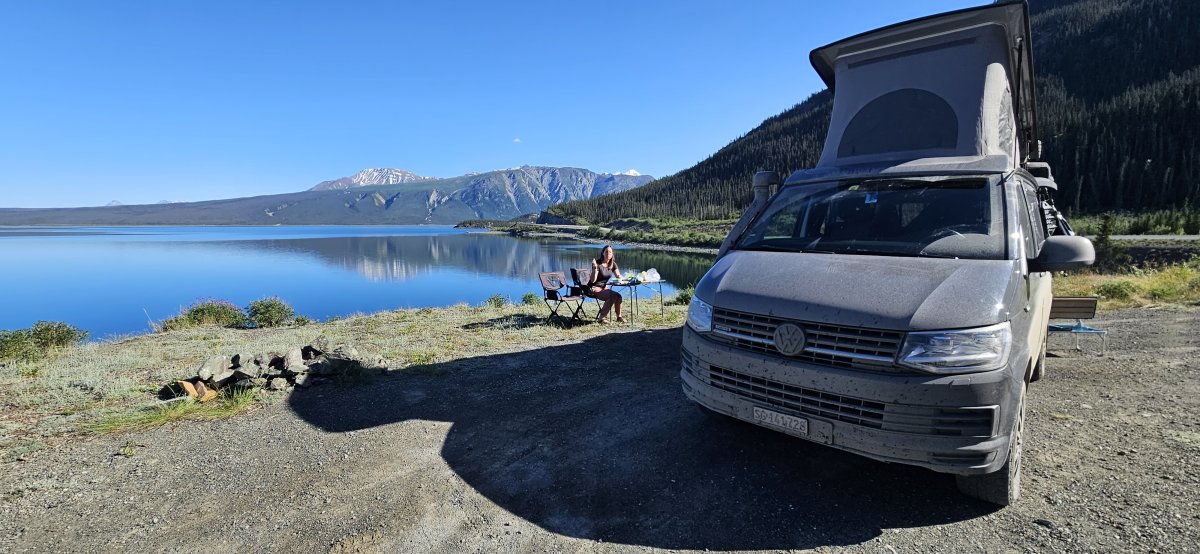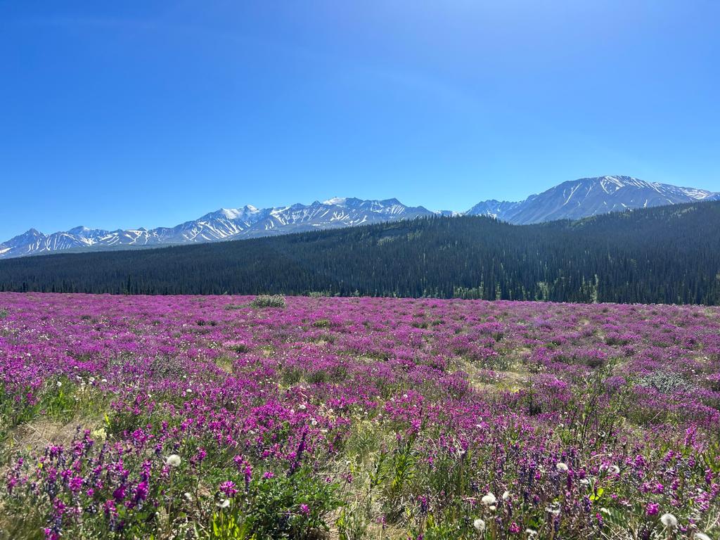 Beim Kathleen Lake gefällt es uns besonders gut, deshalb bleiben wir gleich drei Nächte am selben Ort. Einen Tag lang machen wir einfach mal nichts und chillen am wunderschönen See. Am Abend nehmen wir an einem Bonefire Talk teil und lernen viel über den Kluane Nationalpark. 80% des Parks ist mit Eis bedeckt. Die restlichen 20% sind mehrheitlich Wald (boreal forest oder Taiga) und gilt neben dem Amazonas Regenwald als zweit grösste Lunge der Welt.