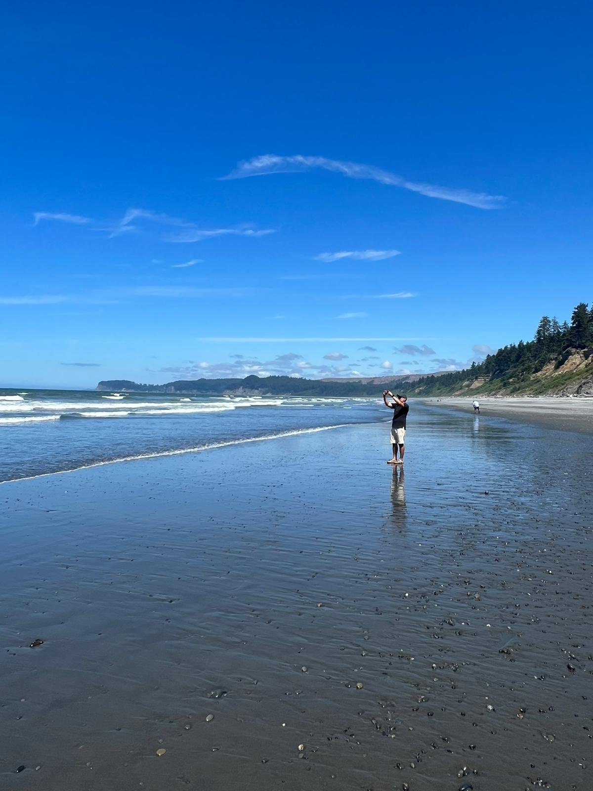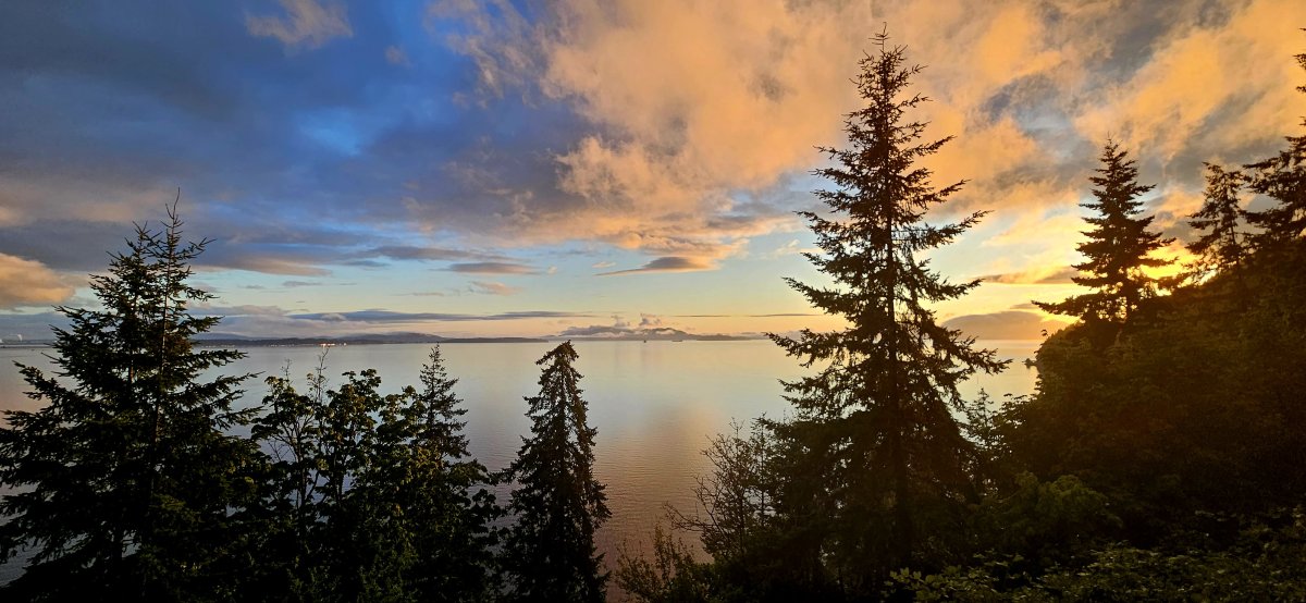 Wir haben noch fünf Tage Zeit und fahren erst mal Richtung Olympia Nationalpark. Es regnet stark und wir übernachten an einer Klippe am Pacific. Rechtzeitig zum Sonnenuntergang hört es auf zu regnen und wir sehen den Pacific doch noch. Beim Fotografieren lernen wir einen netten Camper von der Ostküste kennen und erben einiges an Esswaren, da er am nächsten Tag heimfliegt.