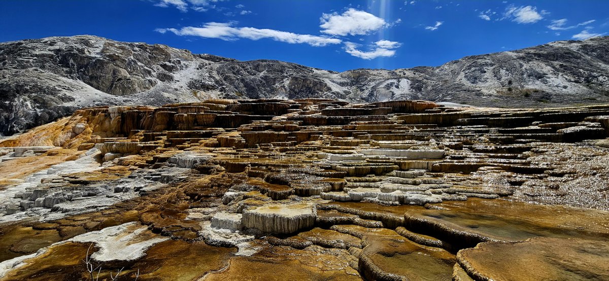 Im Yellowstone Park warten schon tausende andere Touristen. Der Park ist eine Reise wert. Aber es hat uns einfach zu viele Touristen. Am ersten Tag schauen wir uns vor allem den nördlichen Teil des Parks an. Die Geysire sparen wir für den zweiten Tag auf.