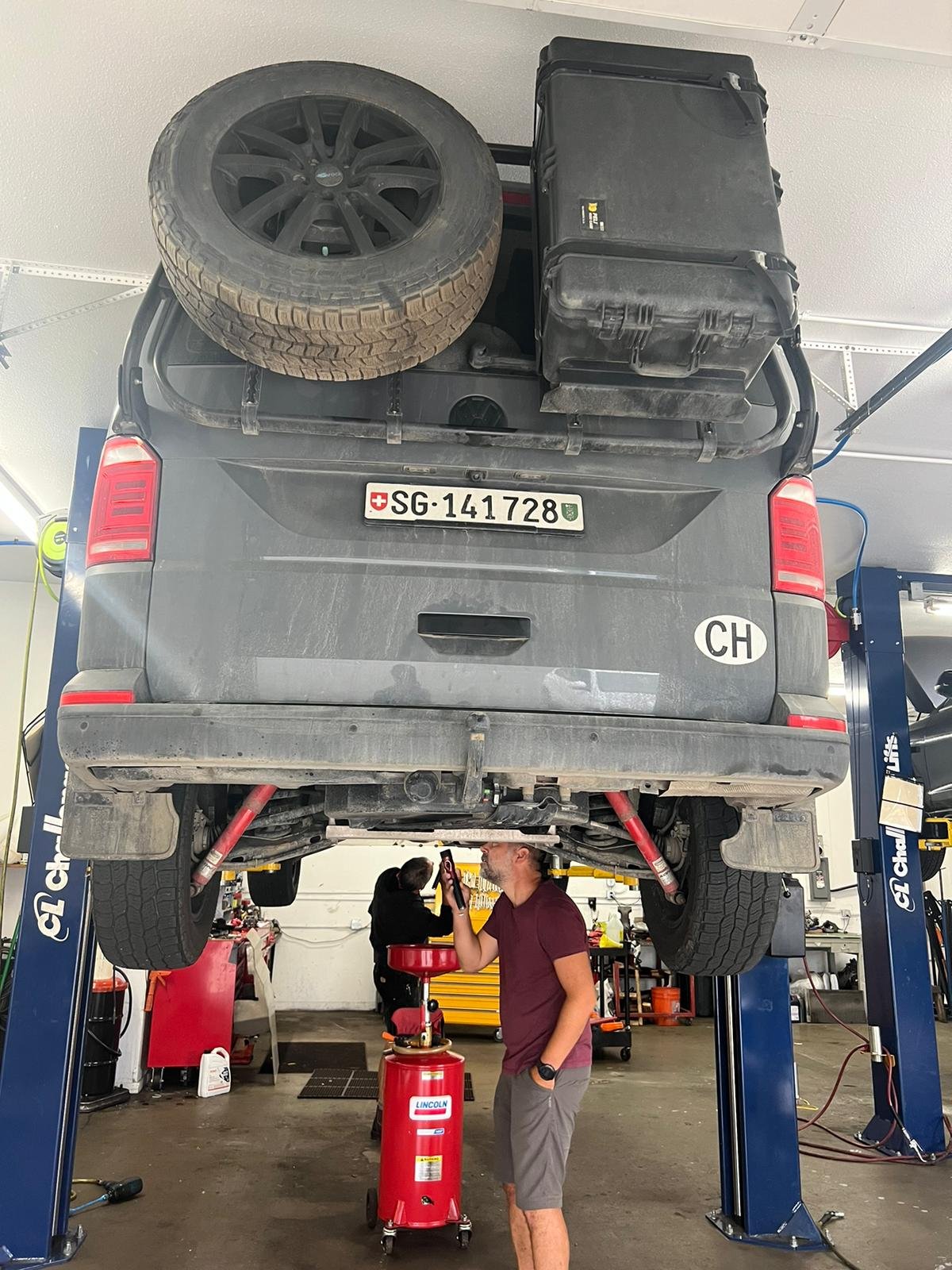Unterdessen baut Joos unseren neuen Wasserfilter, den wir bestellt haben, ein. Solange der Filter noch sauber ist, funktioniert alles einwandfrei. Allerdings wird der Druck, je länger wir unterwegs sind, abnehmen. Dies wird uns erst jetzt richtig bewusst. In den USA gibt es leider keine so kleine Pumpen die in unser Auto passen. Das heisst wir müssen in Europa eine stärkere Pumpe bestellen.