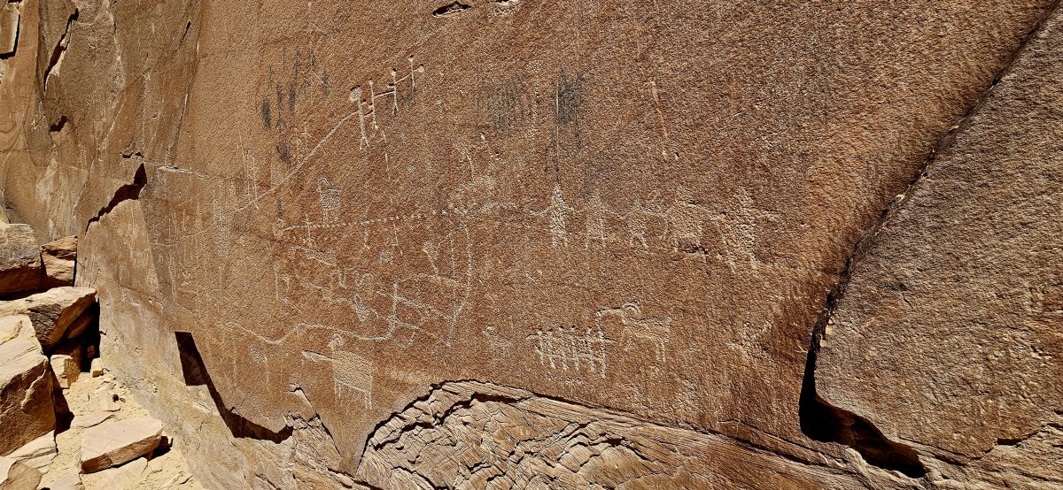 Am Buckhorn Wash Pictograph Panel bestaunen wir 2'000 Jährige Zeichnungen von Natives. Schon erstaunlich, dass man diese nach so vielen Jahren noch sehen kann und die Naturfarben nicht verblasst sind. Das Problem sind allerdings wie immer die blöden Touristen. Leider zerstören diese die Zeichnungen immer wieder indem sie ihre Namen auch verewigen möchten. Wir geniessen die Fahrt in vollen Zügen und kommen nur sehr langsam voran.