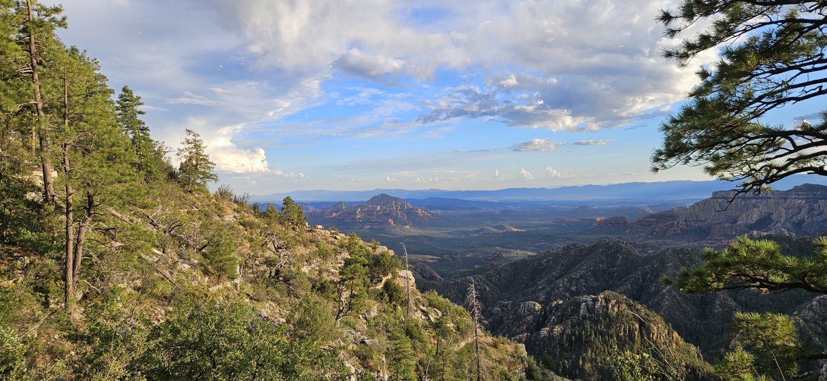 In der Wüste ist es sehr heiss und wir freuen uns auf eine kleine Abkühlung in Flagstaff. Da ist es deutlich kühler. Unser Schlafplatz liegt im Wald und man sieht über die Berge von Sedona. Vom Ausblick haben wir leider nicht so viel. Es wird schnell dunkel, somit hat sich der lange Anfahrtsweg für uns nicht gelohnt. Etwas weiter unten im Wald wäre es auch schön gewesen und der Weg bedeutend kürzer.