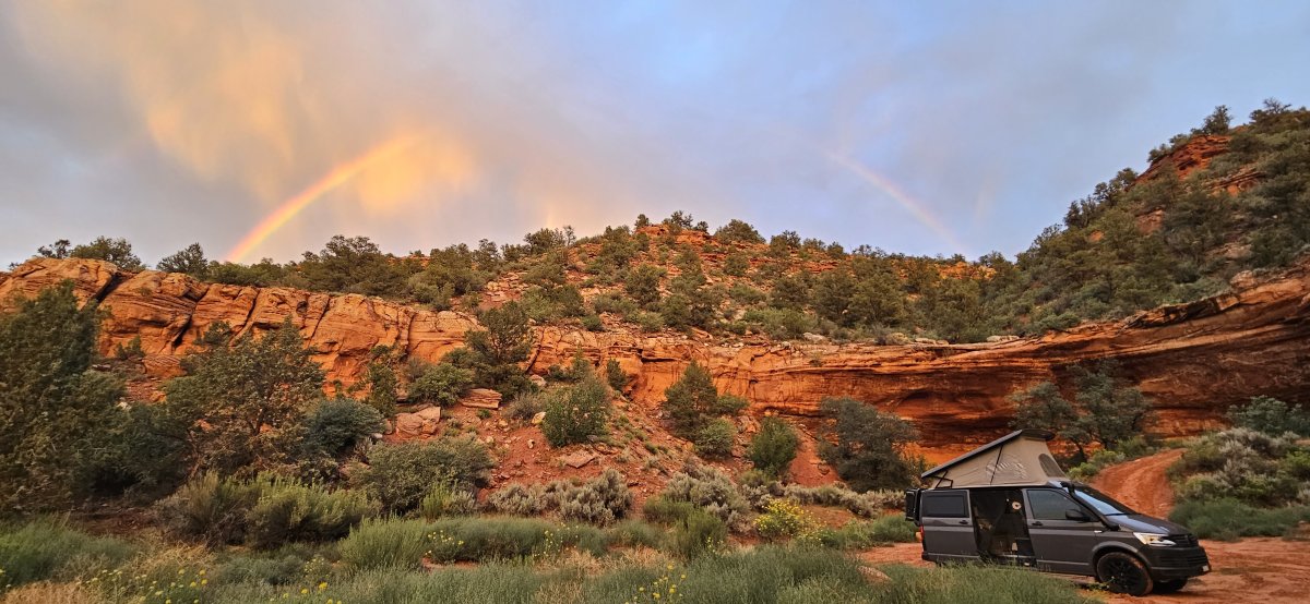 Wir übernachten im Hog Canyon und werden von einem wunderschönen Regenbogen überrascht.