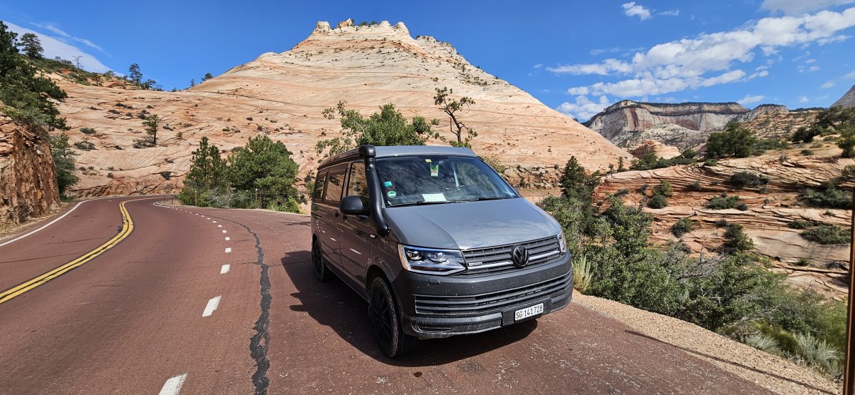 Eigentlich wollen wir bei den Coral Sand Dunes Sandboarden. Leider ist aufgrund des Regens der Sand zu nass und uns wird davon abgeraten. Schade. Wir entscheiden uns weiter zum Zion Nationalpark zu fahren. Leider hat es bereits um 10 Uhr Morgens sehr viele Besucher. Die Narrows Tour können wir leider auch nicht machen da uns das Wasser leider wortwörtlich zum Hals stehen würde. Bei einer Wassertemperatur von aktuell 16°C ist dies nicht gerade angenehm. Irgendwie soll es aktuell einfach nicht sein. Also weiter geht’s in den Westen.