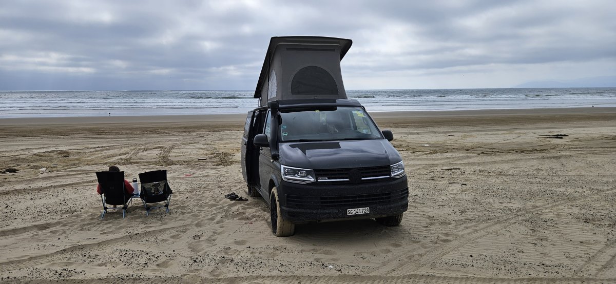 finden wir einen Stellplatz in einem State Park für 10$ direkt am Strand. Das ist ziemlich aussergewöhnlich, da in Kalifornien gefühlt alles doppelt so teuer ist. Leider ist es ziemlich neblig und wir haben nicht so viel von unserem Strandtag. Das Rauschen des Meeres sowie die vielen Pelikane kompensieren das schlechte Wetter etwas.