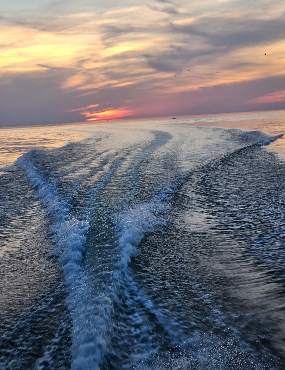 Ein Bootsausflug darf am Lake Michigan nicht fehlen. Wir haben Glück und das Wetter ist perfekt und der See so ruhig wie nie. Nach einem Mittagessen mit Freunden treffen wir uns bei der Marina von Grand Haven. Die Kühlboxen unserer Freunde sind prallgefüllt und die Snacks bereit. Wir feiern heftig auf dem Boot und haben eine Superzeit. Die Kühlboxen sind rasch geleert, so dass wir mit dem Boot den Liquor Store ansteuern. Frisch aufmunitioniert, geht es wieder raus auf den See, wo wir noch bis um 22 Uhr weiterfeiern.