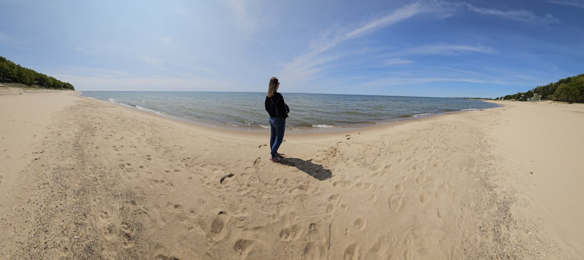 Um die zu vielen Pfunde ein bisschen runter zu bringen, machen wir einen Ausflug zum schmucken Feriendorf "Saugatuck". Das Dorf ist aktuell noch wie ausgestorben, denn in den USA beginnt die Sommersaison erst am "Memorial Weekend". Eine Treppe mit 300 Stufen auf die Düne bringt uns leicht ins Schwitzen. Bezahlt wird der Aufstieg mit einem schönen Ausblich auf den Lake Michigan.