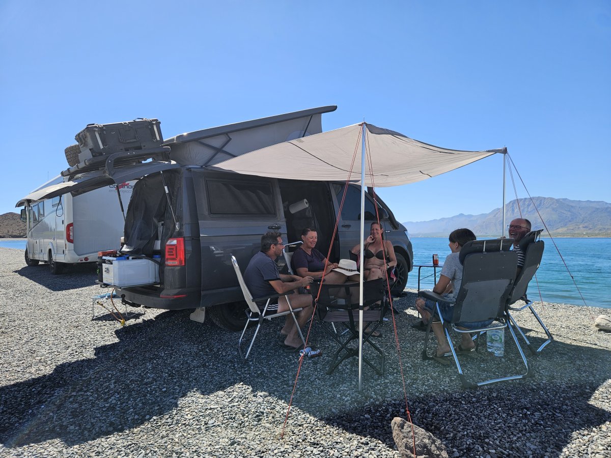 In Bahia de los Angeles campen wir auf einem perfekten Kiesstrand. Das Wasser ist super warm und wir können das erste Mal richtig schwimmen.