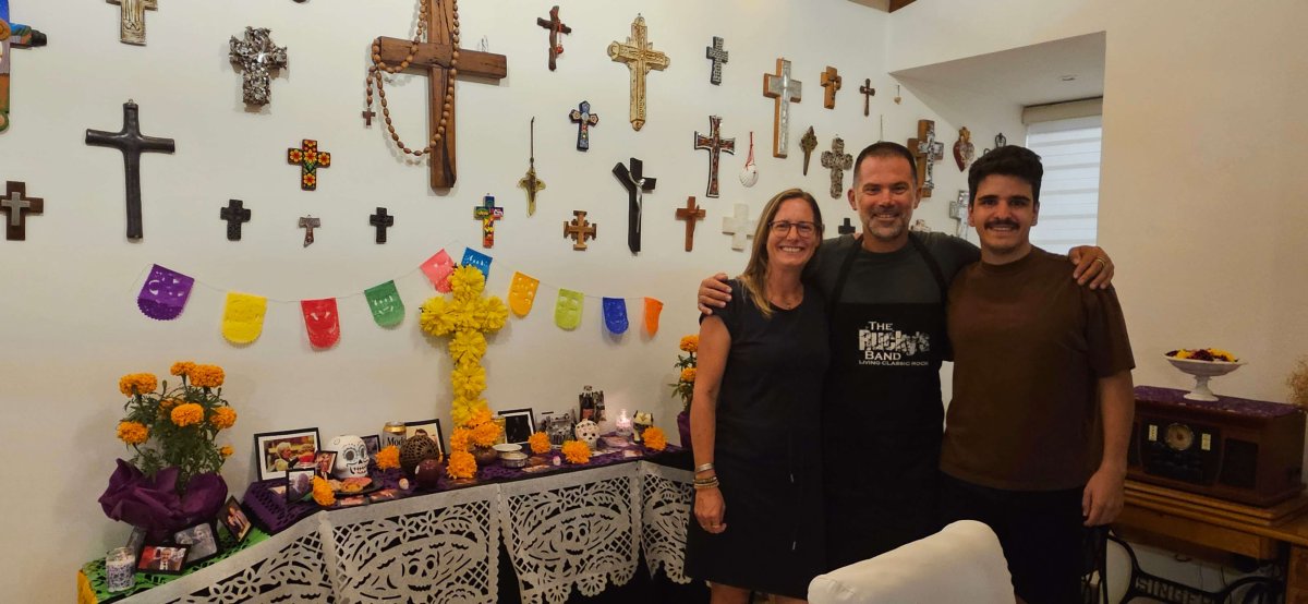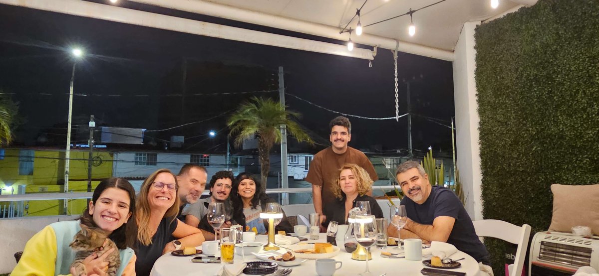 Wir haben es tatsächlich geschafft und sind in Coyoacan. Aufgrund des Feiertages ist hier die Hölle los und von den schönen Gebäude sehen wir nicht allzu viel. Ganz Mexico City scheint den Tag hier zu feiern. Es hat uns fast ein bisschen zu viele Leute. Trotzdem ist es schön, einen weiteren traditionell mit der Familie zu verbringen. Zusätzlich treffen wir noch Rodrigo – ein Kollege von Pablo, der vor acht Jahren währen Pablos Austauschjahres bei uns die Weihnachten verbracht hat.