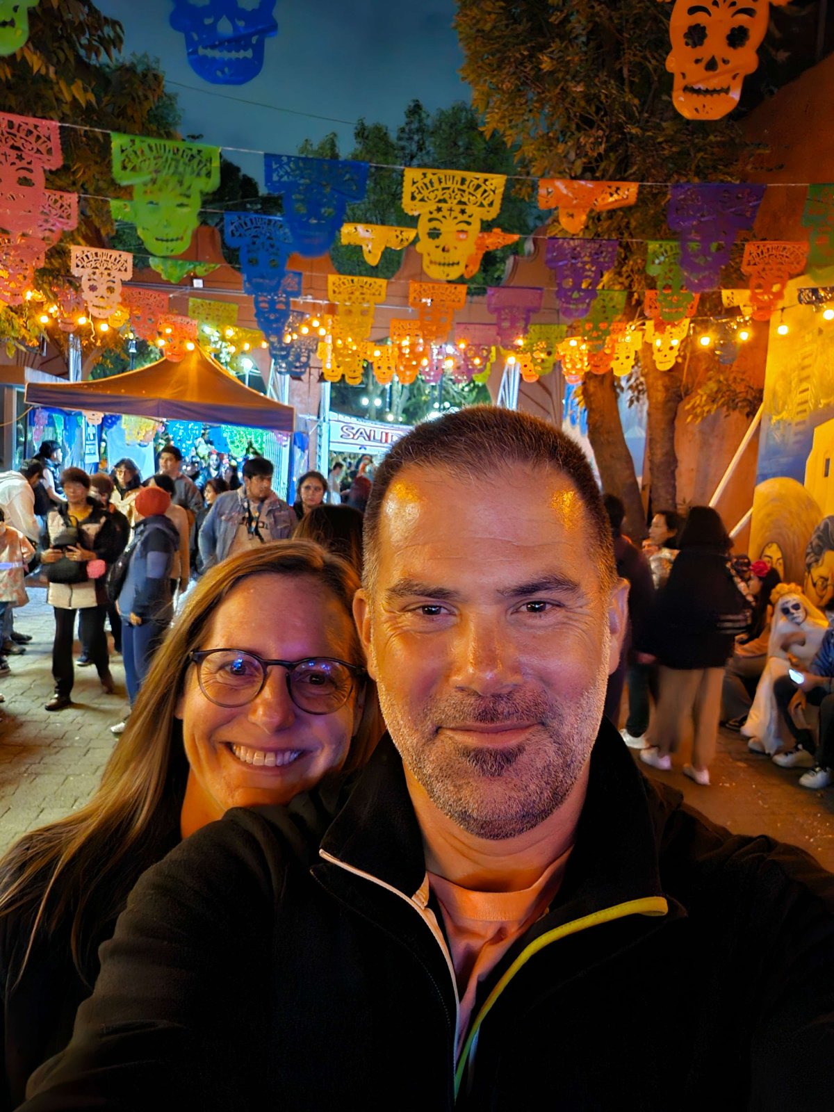 In Mexico City findet seit dem Film James Bond auch ein Umzug statt – allerdings eine Woche vor dem eigentlichen Dia de los muertos. Wir haben gedacht dieser gehört zur Tradition. Dem ist leider nicht so. Die Leute fanden den Gedanken an einen Umzug nach dem Vorbild des James Bond Filmes ganz nett. Unterdessen ist der Umzug Tradition 😊.