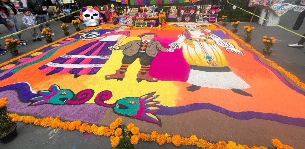 El dia de los muertos ist neben Weihnachten einer der wichtigsten Feiertage in Mexico. An diesem Tag kommen die Toten zurück auf die Erde. Die Mexikaner errichten sowas wie einen Altar schmücken diesen mit Cempasúchil (orange, gut riechende Ringelblumen die die Toten zum Altar führen sollen) und stellen die Fotos ihrer geliebten Verstorbenen auf. Damit nur die guten Geister zurückkommen wird etwas Salz dazu gestellt. Während ihres Aufenthaltes auf der Erde soll es ihnen an nichts fehlen – so wird auch Wasser, Pan de Muerto (spezielles Brot) sowie etwas das der Verstorbene geliebt hat, hinzugestellt.
