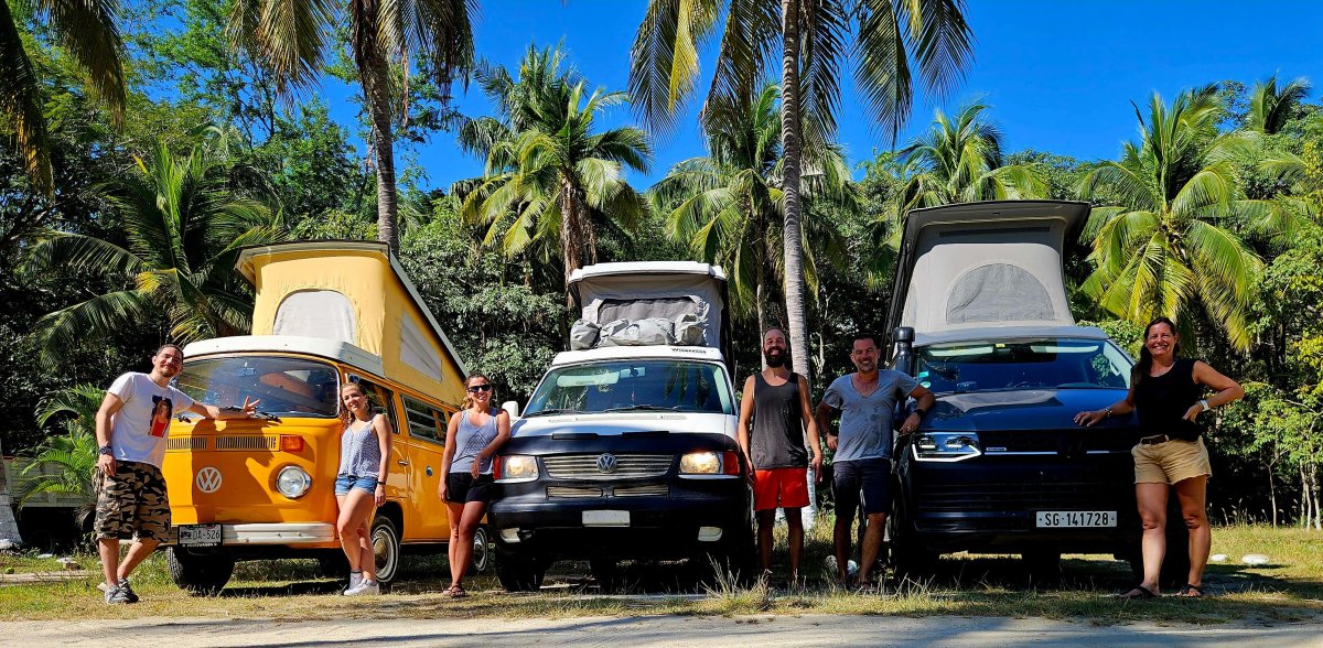 Auf dem Camping treffen wir auf Begoña und Emilio von Mexiko City. Sie sind für eine Hochzeit nach Huatulco gekommen und übernachten auch auf dem Camping. Wir sind etwas neidisch auf sie da sie in einem wunderschönen gelben T2 schlafen. Der Abend zusammen wird auf jeden Fall mit viel Tequila feucht fröhlich lustig.