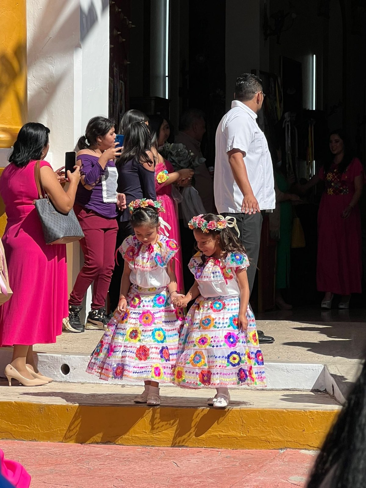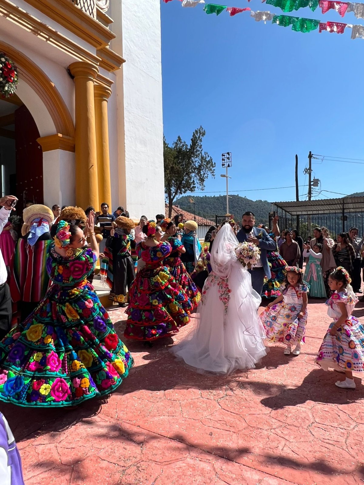 In San Cristobal sehen wir gleich zwei Hochzeiten. Die eine sehr traditionell – die Männer erinnern uns fast etwas an unsere Silvesterchläuse im Appenzell. Die andere Hochzeit ist eher modern und die ganze Festgesellschaft tanzt sich mit Band durch das Städtchen.