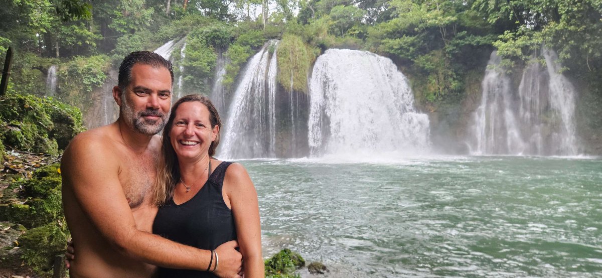 Hannah und Jason haben genug von Mexiko. Sie wollen weiter via Guatemala nach Belize. Wir hingegen treffen Joanna Mitte Dezember in Guatemala. Da das Grenzgebiet beider Länder nicht ganz ungefährlich ist, beschliessen wir zusammen über die Grenze zu fahren. Das Tagesziel wäre eigentlich die Grenze zu Guatemala gewesen. Wie immer kommt es aber Anders. Bei Jason ist ein Verbindungsteil zum Kühlwasser kaputt und bis wir das Ersatzteil finden, ist es für eine Fahrt zur Grenze zu spät. So parken wir beim nächsten Wasserfall Cascada Misol Ha. Unser nächstes Ziel wäre jetzt früh die Wasserfälle anzuschauen und dann über die Grenze nach Guatemala zu fahren - ihr merkt es schon, es kommt wie immer anders.