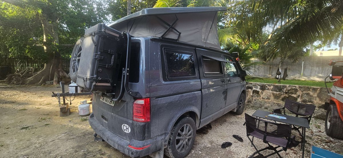Der Grenzübertritt nach Guatemala ist ziemlich einfach. Da man keine Milchprodukte über die Grenze nehmen darf, schmuggeln wir den Gruyere den wir in Mexiko gekauft, haben in der Handtasche 😊. Wenn sie nach Esswaren suchen, dann im Kühlschrank oder in der Kühltasche.