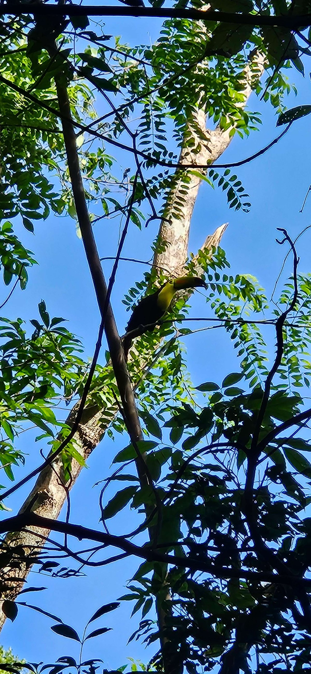 Wir brauchen eine Weile bis wir tatsächlich Affen sehen. Wenn sie fressen sind sie nämlich ganz still, doch die Blätter die von den Bäumen fallen, verraten sie hoch oben in den Baumwipfeln. Für ein Foto sind sie leider zu weit weg ☹