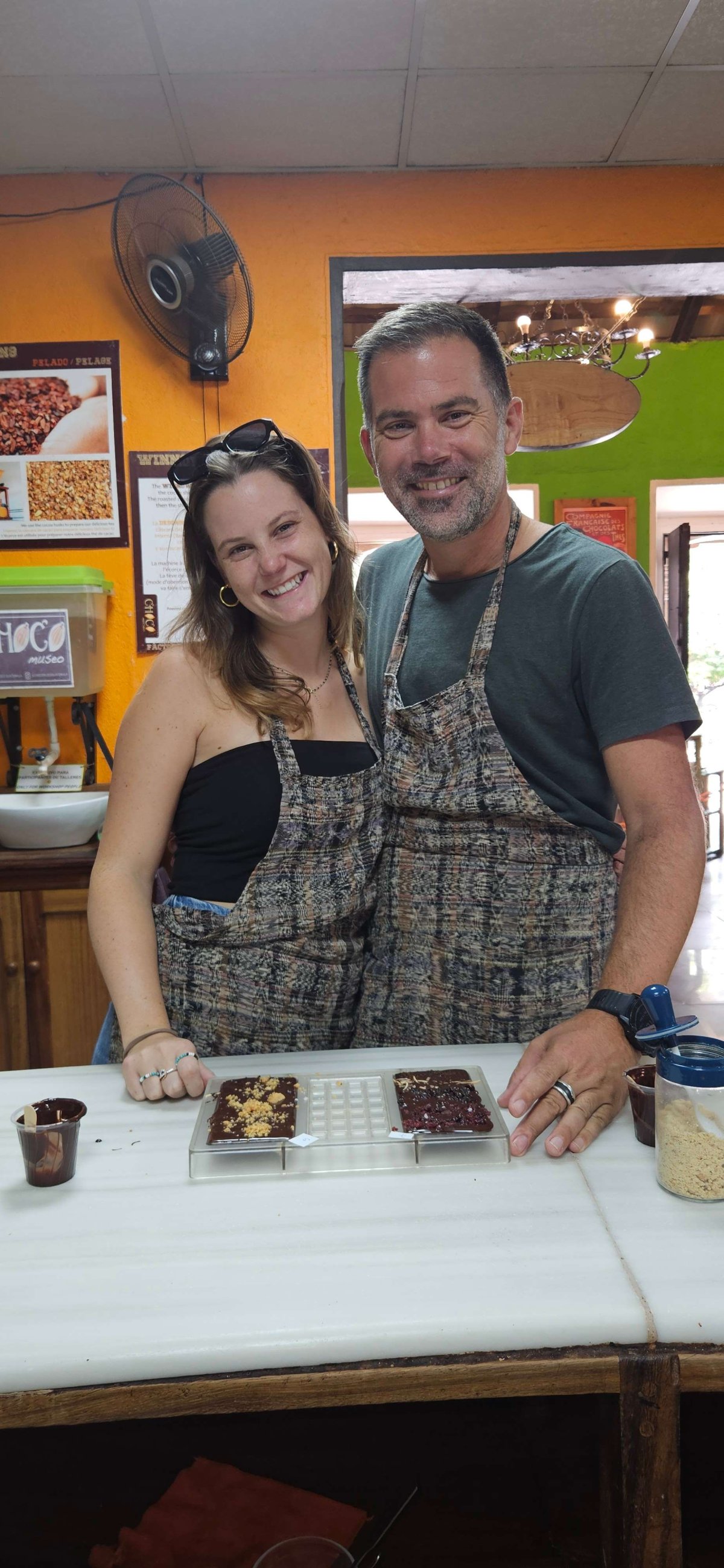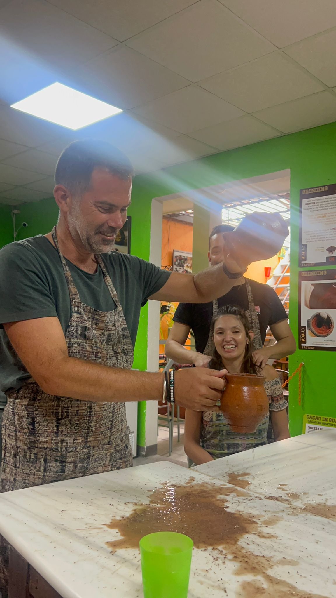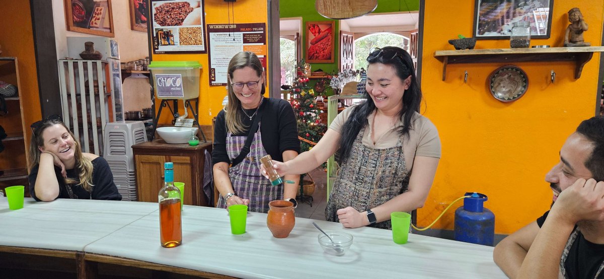 Im Schoggi Museum in Guatemala lernen wir wie man Schoggi macht. Dank unserer tollen Lehrerin ist dies auch super lustig und spannend.