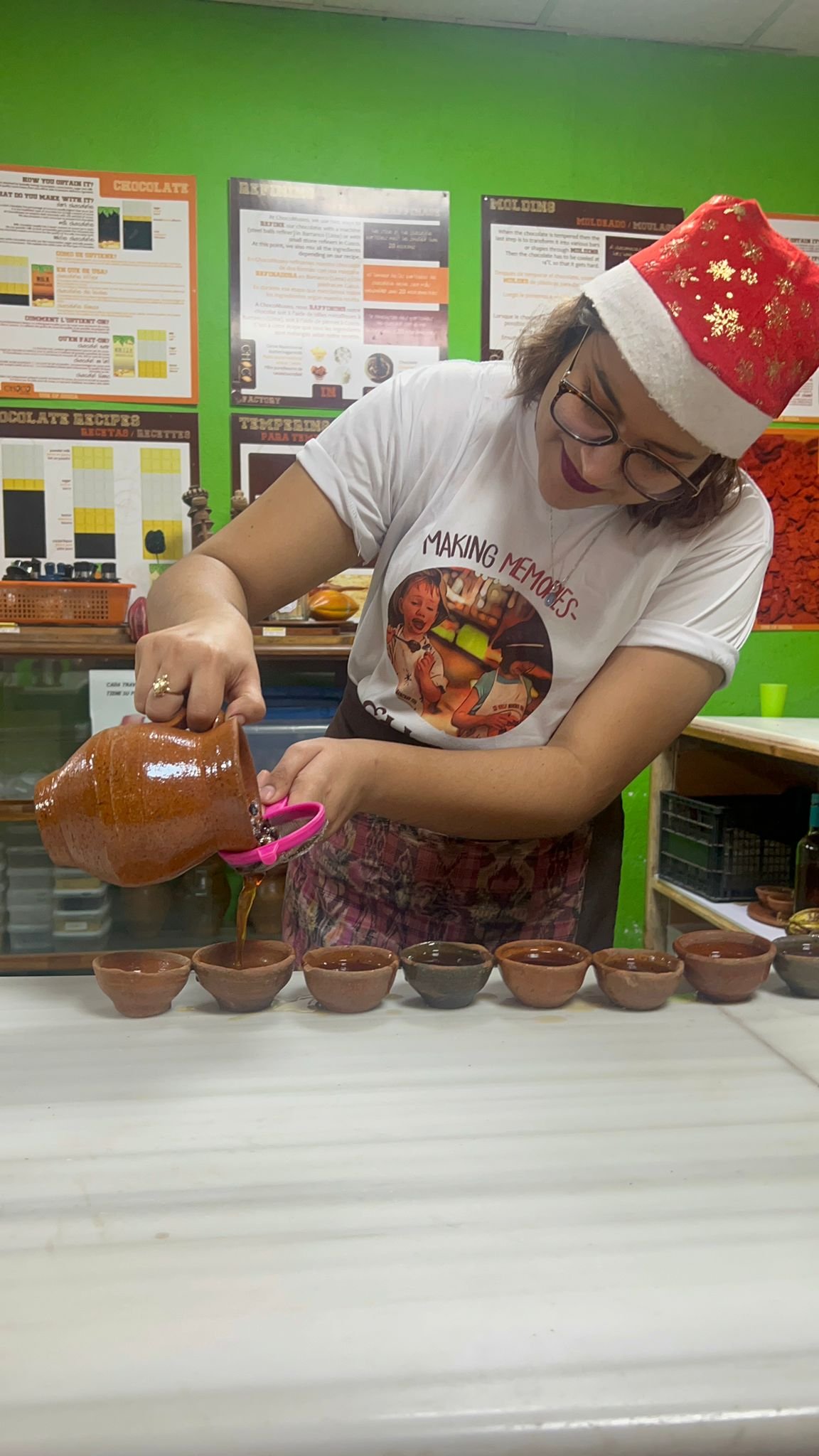 Die Mayas haben die Schokolade entdeckt und für ihre Rituale benutzt. Aus den Schalen der Cacoa Bohnen machen sie Tee und aus den gemahlenen Bohnen einen scharfen Drink. Wir mögen die mit Cardamon und Zimt gewürzte Version mit Milch am besten. Diese wurde aber erst von den Erobern Mittelamerikas, den Spaniern, erfunden.