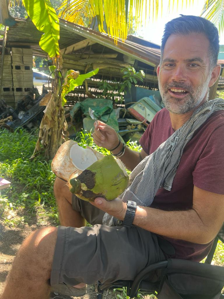 Während unseren drei Nächten bei der Garage werden wir gut versorgt. Mal holen uns die Kinder eine Kokosnuss, mal bestellen sie uns Essen oder kochen selbst und wir kriegen auch etwas davon ab.