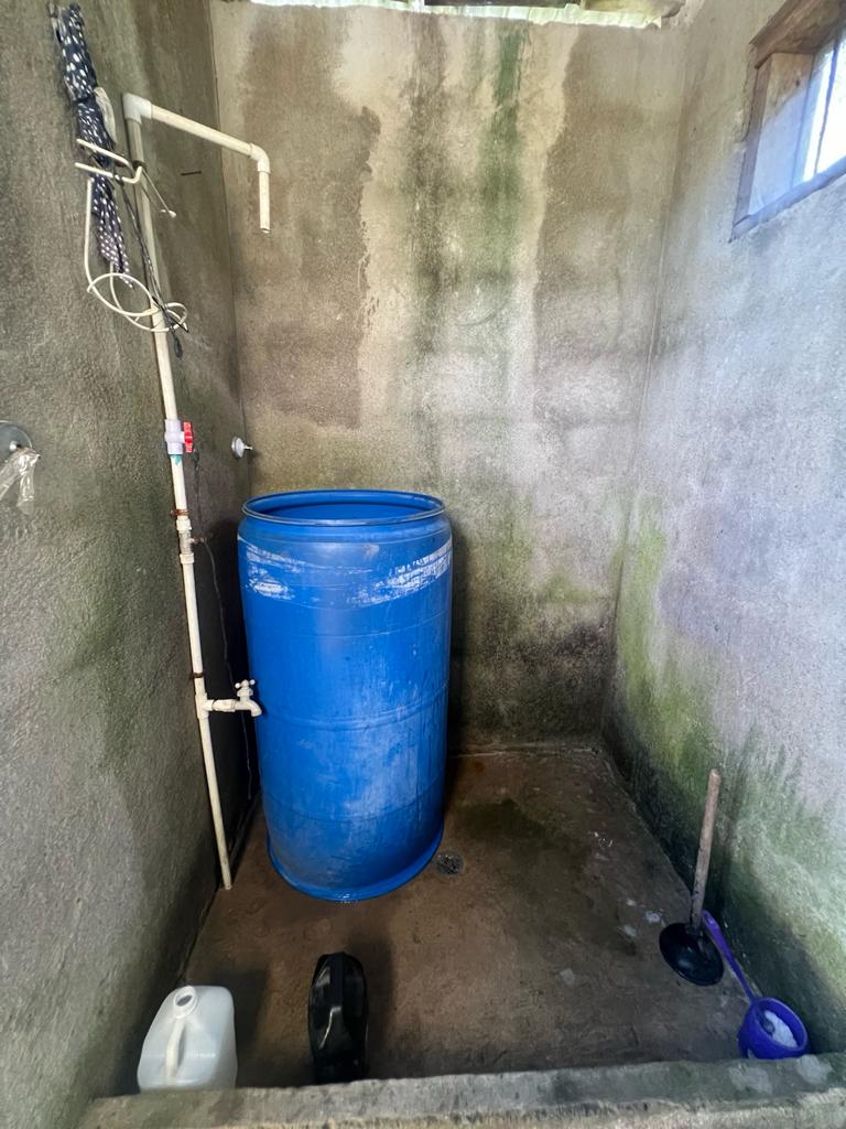Die Dusche besteht aus einem Fass mit kaltem Wasser und Becken – Luxus sieht definitiv anders aus, aber bei dem heissschwülen Wetter in Tela ist dies eine nette Abkühlung - besser als nichts.😊