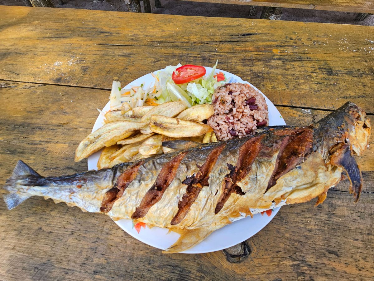 In Punta Sal am Strand essen wir einen super leckeren Fisch, schwimmen und schnorcheln ein bisschen bis es am Nachmittag mit dem Schnellboot wieder zurück geht. Uns hat der Ausflug mässig gut gefallen. Die Halbinsel ist zwar super schön, uns hatte es aber zu viele Touristen. Die Fotos auf denen wir alleine sind trügen 😊.