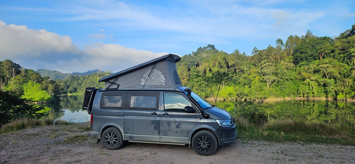 Am nächsten Morgen waschen wir im See unsere Mütze für das Dach und unsere Tasche die wir in einem Fach unter dem Auto aufbewahrt haben und bei der Fahrt durch das Salzwasser in Mexiko ziemlich schmutzig geworden sind. Danach entscheiden wir uns wieder 2.5 Stunden zurück nach Tela zu fahren damit wir das neue Problem beheben können. Besser nochmals bei der gleichen Garage wie an einem neuen Ort nochmals von Null beginnen.