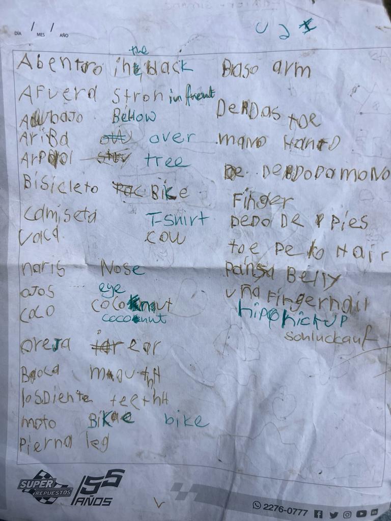 Wie in der Schule holt er dann auch gleich Stift und Papier und dann wird geschrieben und gemalt. Auf Spanisch und Englisch. Er möchte nämlich Englisch lernen 😊.