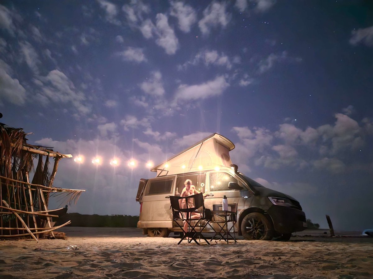 Am Abend gesellen sich unsere Freunde aus Kanada zu uns. Sie müssen leider auf der Strasse parkieren denn ohne 4x4 graben sie sich direkt in den Sand ein. Damit sie nicht direkt vor einem Essensstand stehen holen Hugo und seine Jungs einige Bretter auf denen sie parken können. Alle sind super nett und gastfreundlich.