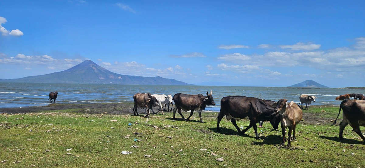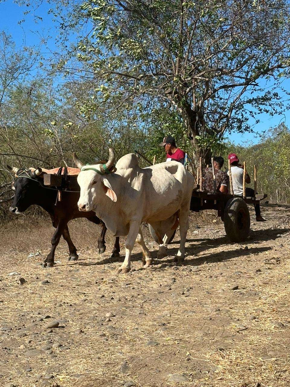 Unsere erste Nacht in Nicaragua verbringen wir ziemlich nahe an der Grenze an einem Fluss. Da die Naturstrasse am Fluss endet sind wir am nächsten Morgen ziemlich überrascht, dass die Strasse stark befahren ist. Nicht mit Autos aber mit Pferd oder Ochsen und Wagen 😊