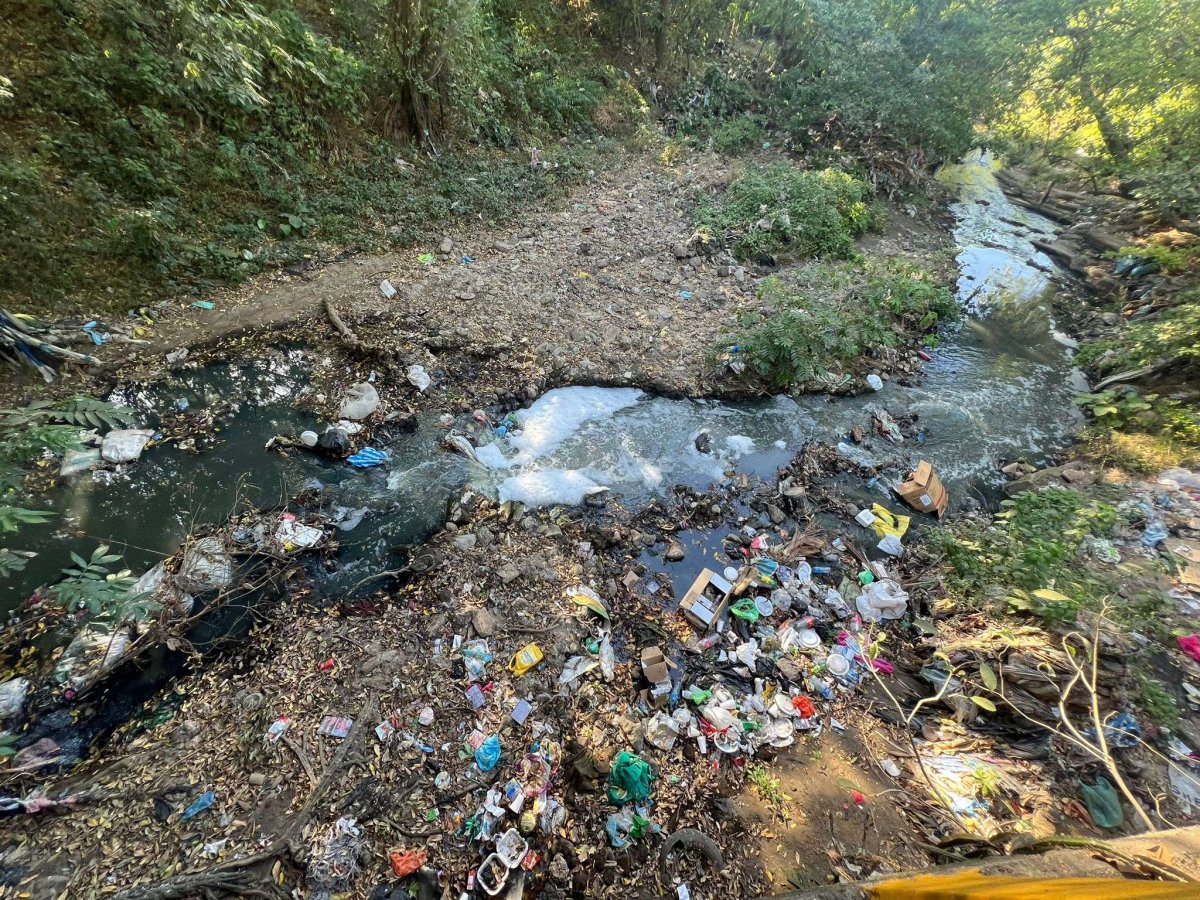 Leider kann man mit einem Foto den Geruch nicht einfangen. An diesem Bach der durch Léon fliesst riecht es so streng nach faulen Eiern, dass es kaum auszuhalten ist.