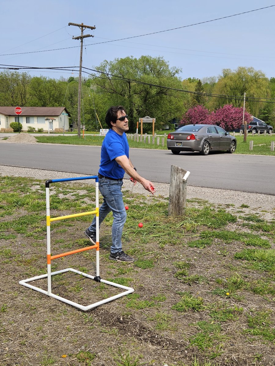 Und wieder lernen wir ein weiters Outdoor game (Ladderball) kennen. Wer als erster 21 Punkte hat, gewinnt. Oberste Stange gibt 3 Punkte, mittlere Stange 2 usw.