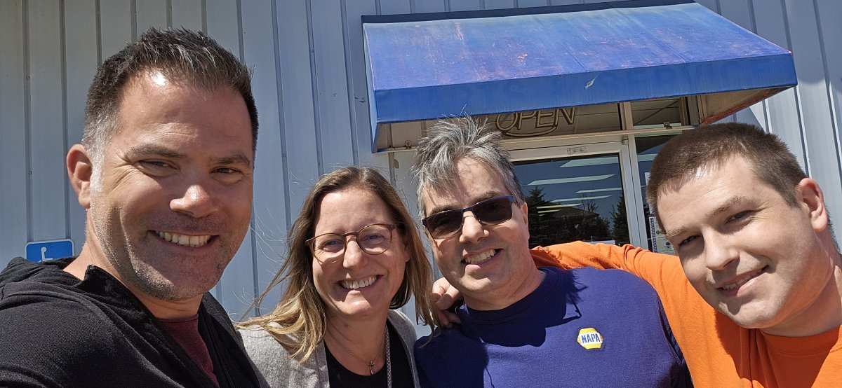 Gleich am ersten Tag nach Ankunft beginnt unser Familienmarathon. Gefrühstückt wird im Southwood, Uncle Stevens Restaurant. Danach trifft Joos Uncle Jeff in seiner Garage um die Pneus und das Öl zu wechseln. Unterstützt werden sie von Uncle Gerard und Uncle Eric. Das ist wohl auch der Grund, weshalb ein Öl- und Pneuwechsel vier Stunden dauert. :-) Was haben sie wohl wirklich gemacht?