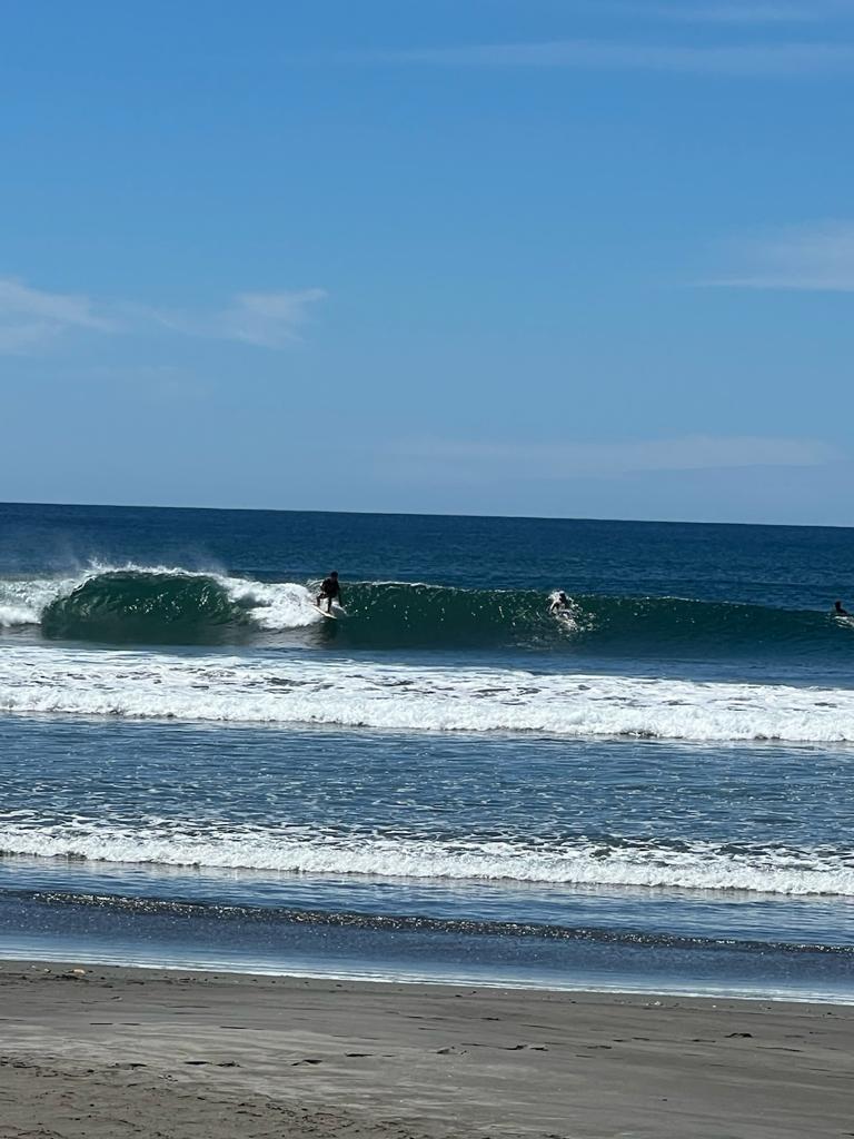 Am Playa Junquillal finden wir pünktlich zum Sonnenuntergang doch noch ein schönes Übernachtungsplätzchen bei dem wir viele ziemlich gute Surfer beobachten können.