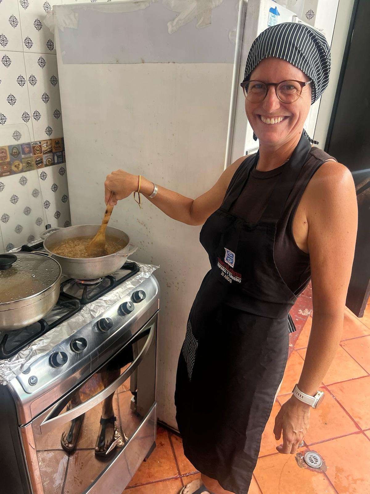 Am Nachmittag organisiert die Schule jeweils Aktivitäten an denen man teilnehmen kann. Am ersten Tag sind wir zu einem kolumbianischen Essen eingeladen. Dieses besteht aus gegrillten Fisch, Kokosreis, Patacones und Salat. Insbesondere der Fisch und der Kokosreis hat uns sehr gut geschmeckt. Den Kokosreis kochen wir im Kochkurs gleich selber. Wer bei Kokosreis weissen Reis mit Kokosstücken erwartet, liegt ganz falsch. Kokosreis hat eine braune Farbe da die Kokosmilch so lange gekocht wird bis diese caramelisiert und braun ist. Erst danach wird der Reis in dieser Masse sowie weiterer Kokosmilch gekocht.