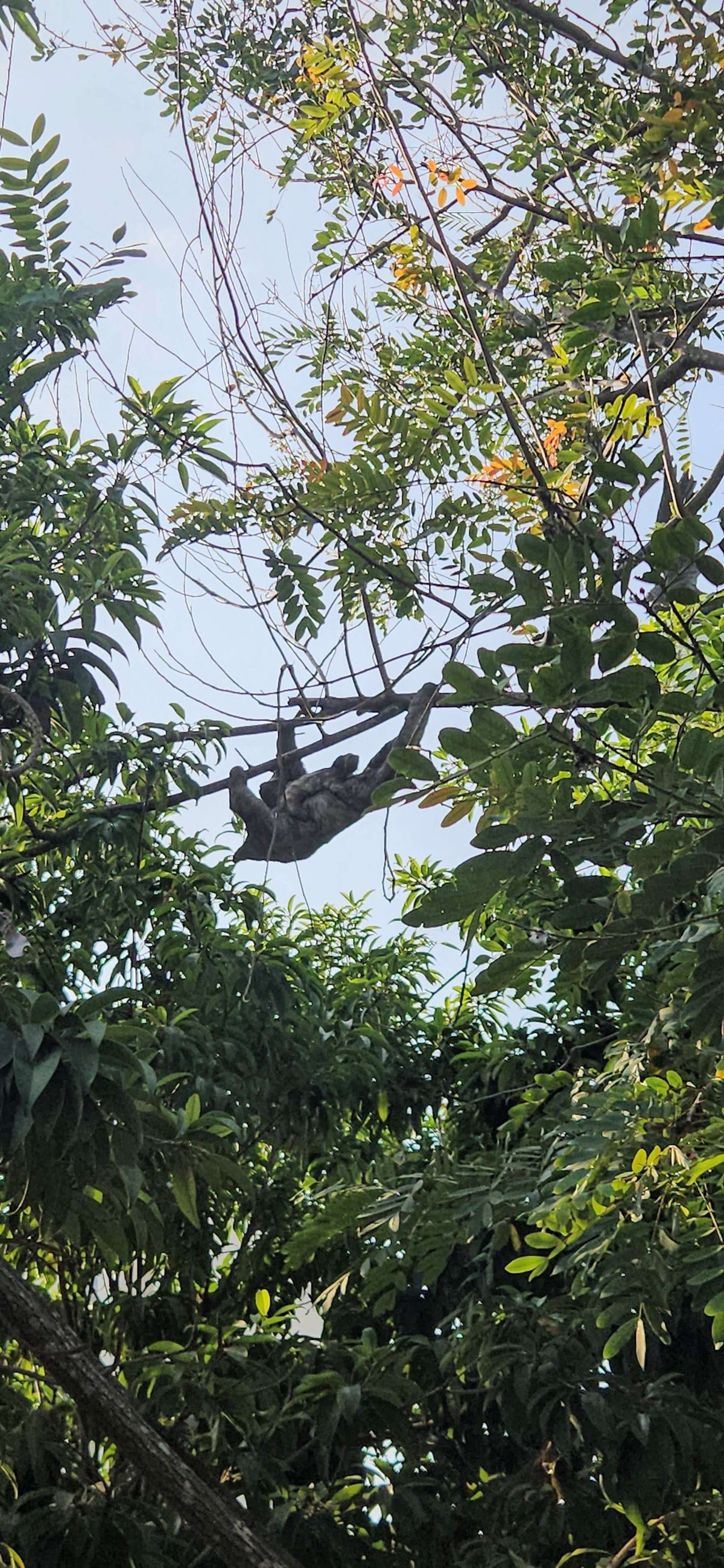 Im Park sehen wir ein Faultier mit Baby - leider ist es sehr schwierig ein gutes Foto zu machen. Aber etwas sehen kann das das Baby schon.