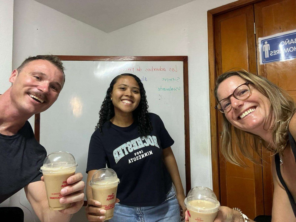 Hoffentlich der letzte Anlauf aber heute können wir endlich das Auto abholen. Wieder muss bei Ana etwas Papierkram erledigt werden und dann kann Ramon am Hafen abgeholt werden. Endlich steht unser Auto im AirBnB. Wir sind froh, dass jetzt der ganze Papierkram erledigt ist. Simone ist mal wieder alleine in der Schule. Da wir ohne Joos aktuell nur zu zweit in der Klasse sind verlängern wir spontan die Pause und holen uns einen Kaffee Juan Valdez. (Will, Maria, Simone)