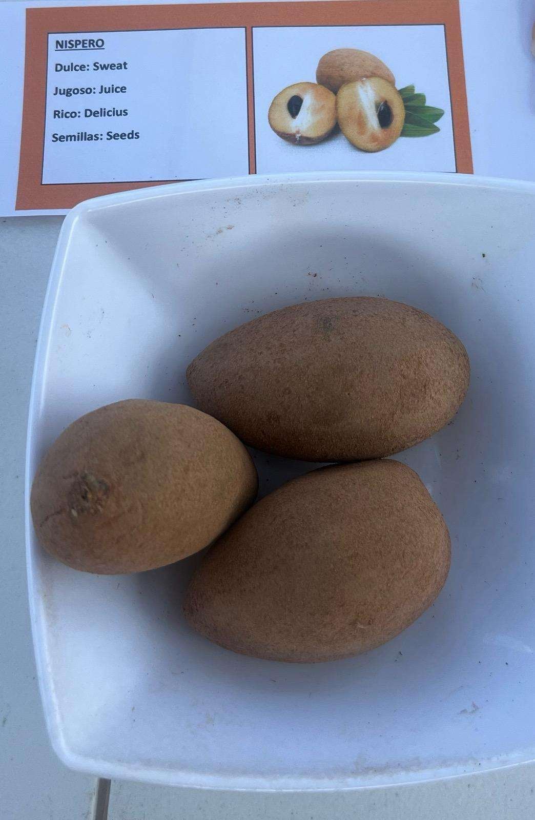 Nispero: Die Frucht ist sehr süss und erinnert von der Konsistenz und von der Farbe etwas an eine Süsskartoffel. Andere sagen an eine Williamsbirne. Sehr speziell, aber auch sehr fein. Würde Simone wieder essen.
