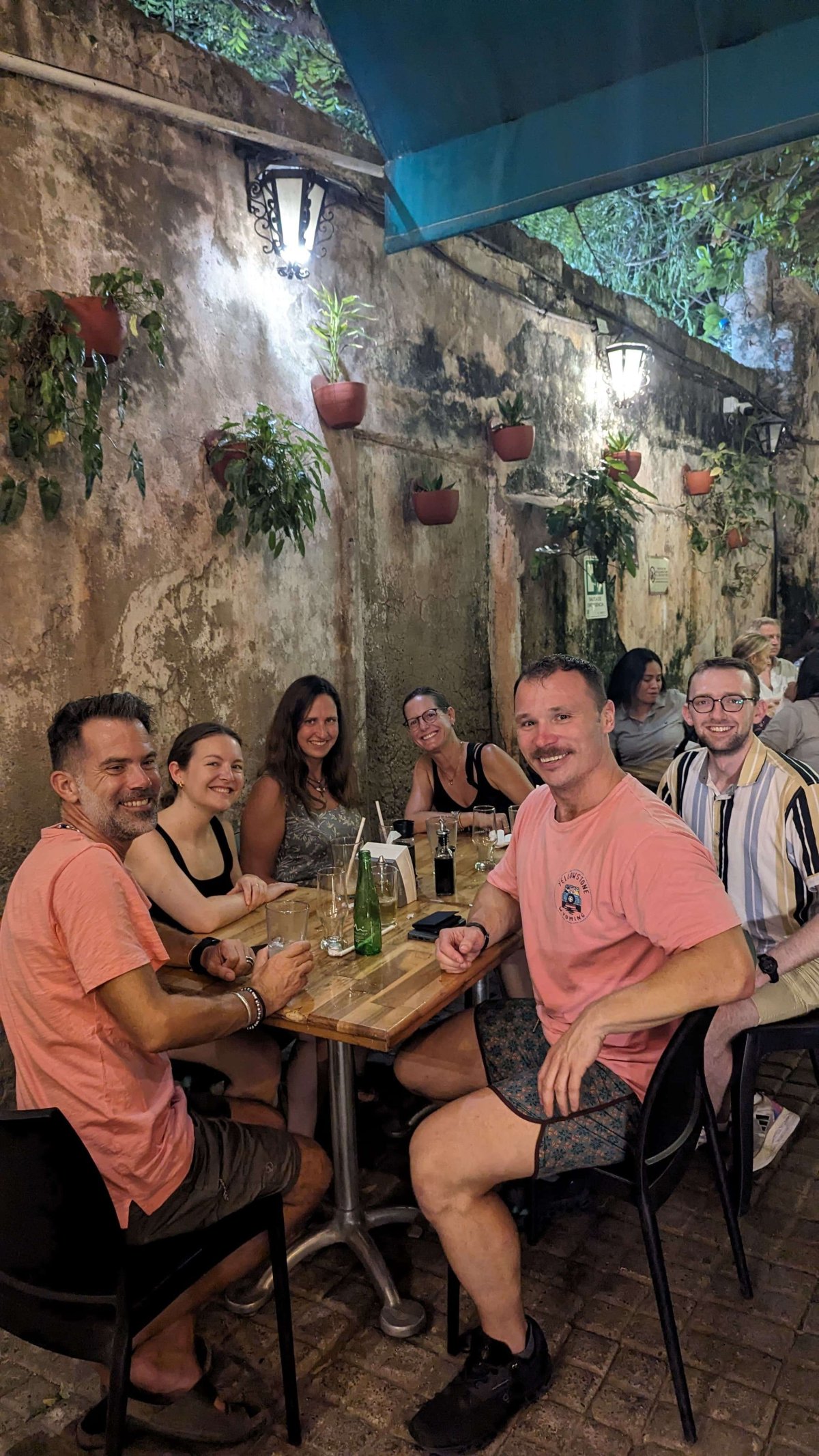 In Cartagena finden wir eine super Cevicheria. Gemäss eines Starkochs (Anthony Bourdain) aus Amerika soll man da die Beste Ceviche essen. Offensichtlich hat sich das herumgesprochen und das Restaurant ist super voll. Richard, ein Koch aus New York gesellt sich zu uns - die Ceviche ist wirklich ganz gut. Da wir alle in die gleiche Spanisch Schule gehen unterhalten wir uns während des ganzen Essens konsequent auf Spanisch. Wir sind richtig stolz auf uns.