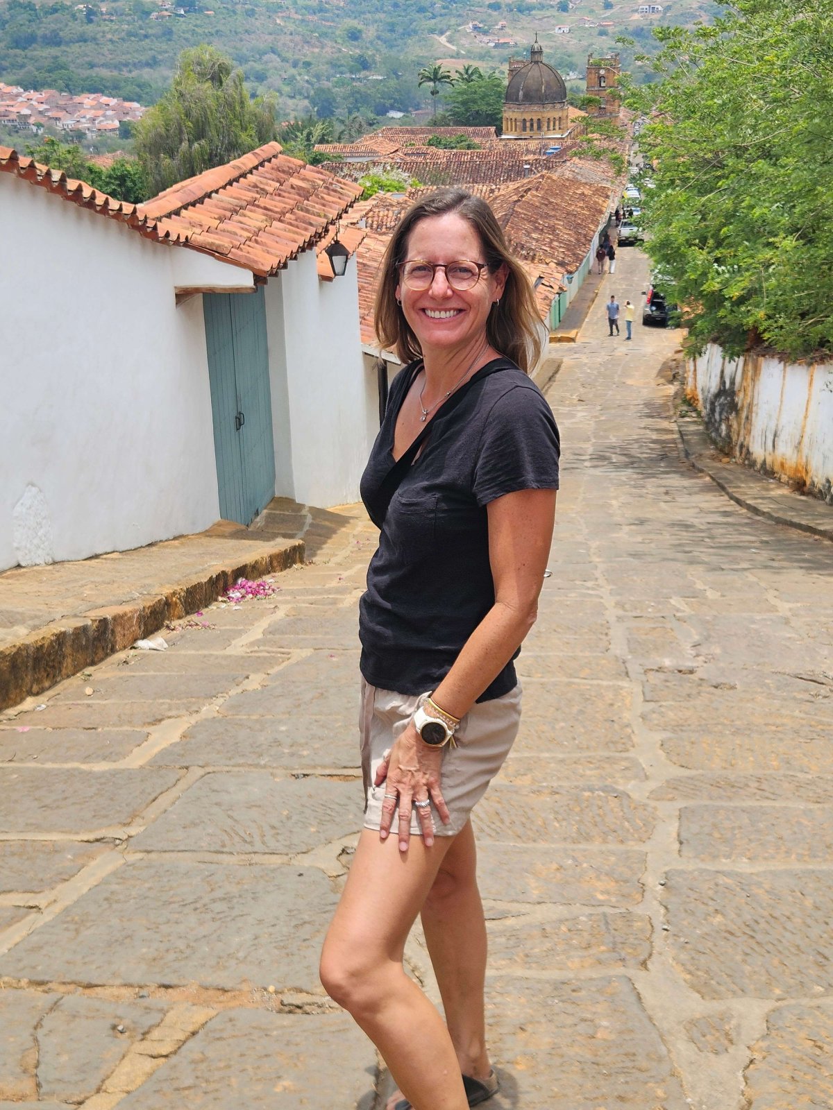 Von unserem Campingplatz sind es zirka 35 Minuten zu Fuss in die Stadt. Simone ging davon aus, dass wir der Strasse entlang nach Barichara laufen und läuft mit den Birkenstocks los. Joos hat aber etwas ganz anderes im Sinn und aus der geteerten Strasse wird ein Wanderweg. Zitat Joos: Jesus hatte sicher auch nicht die besseren Schuhe an und er hat dazu noch ein Kreuz getragen. Auf Deutsch gesagt halt die Klappe und lauf einfach. Der Weg nach Barichara ist dann auch ganz schön mit einer tollen Aussicht. Schade ist es etwas dunstig ansonsten hätte man die Berge noch besser gesehen.