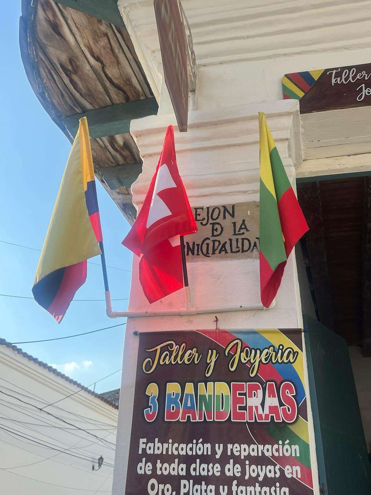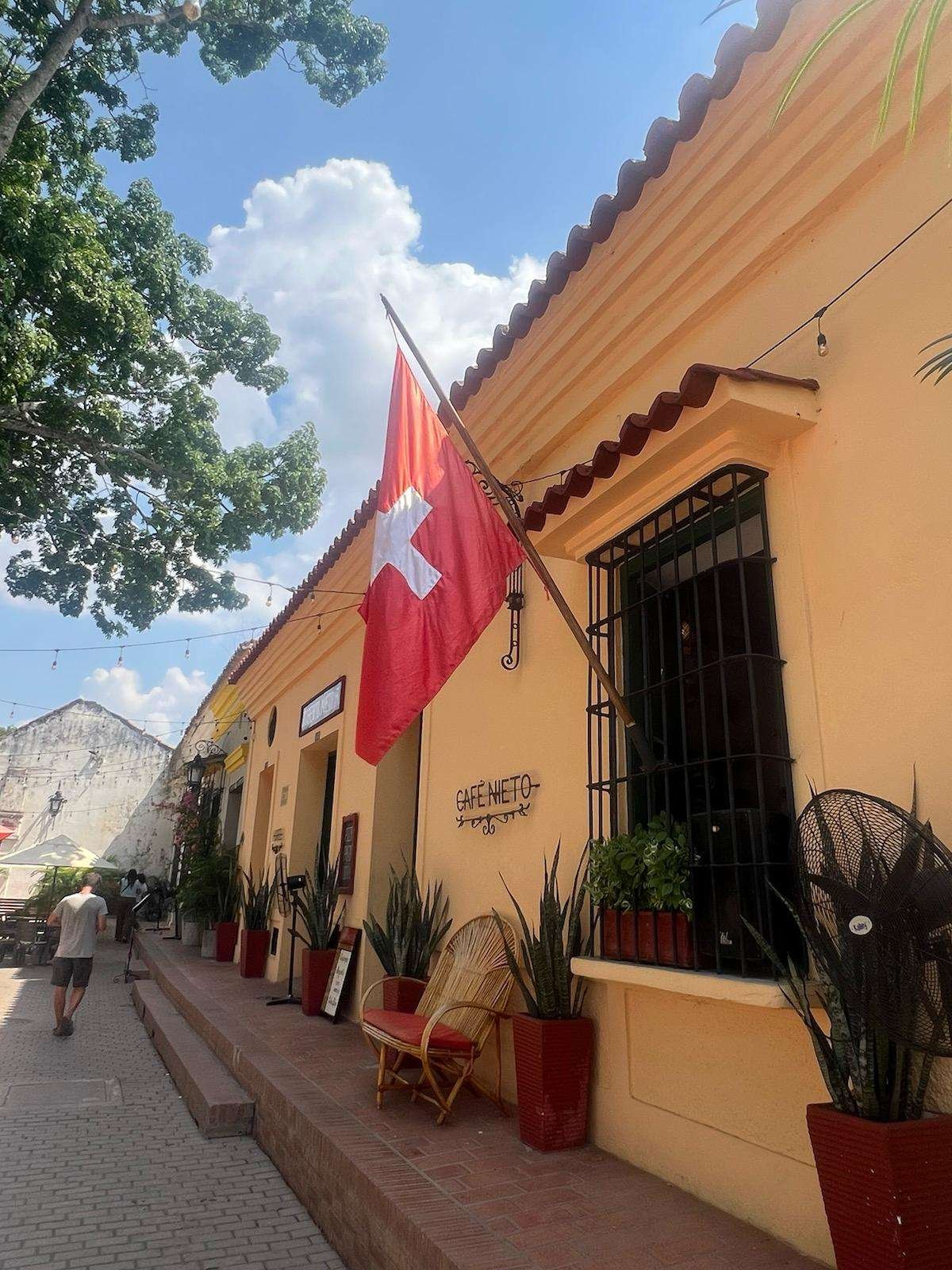 Am Anfang wundern wir uns, weshalb in der Stadt so viele Schweizerfahnen aufgehängt sind. Hä? Aber halt, die Schweizerfahnen sind ja nicht quadratisch. Zum Glück gibt es Google und schnell finden wir heraus, dass dies das Ortswappen von Santa Cruz (Heiliges Kreuz) von Mompós ist. Obwohl sie doch nicht die Schweizerfahne aufgehängt haben, fühlen wir uns doch irgendwie wie zuhause 😊