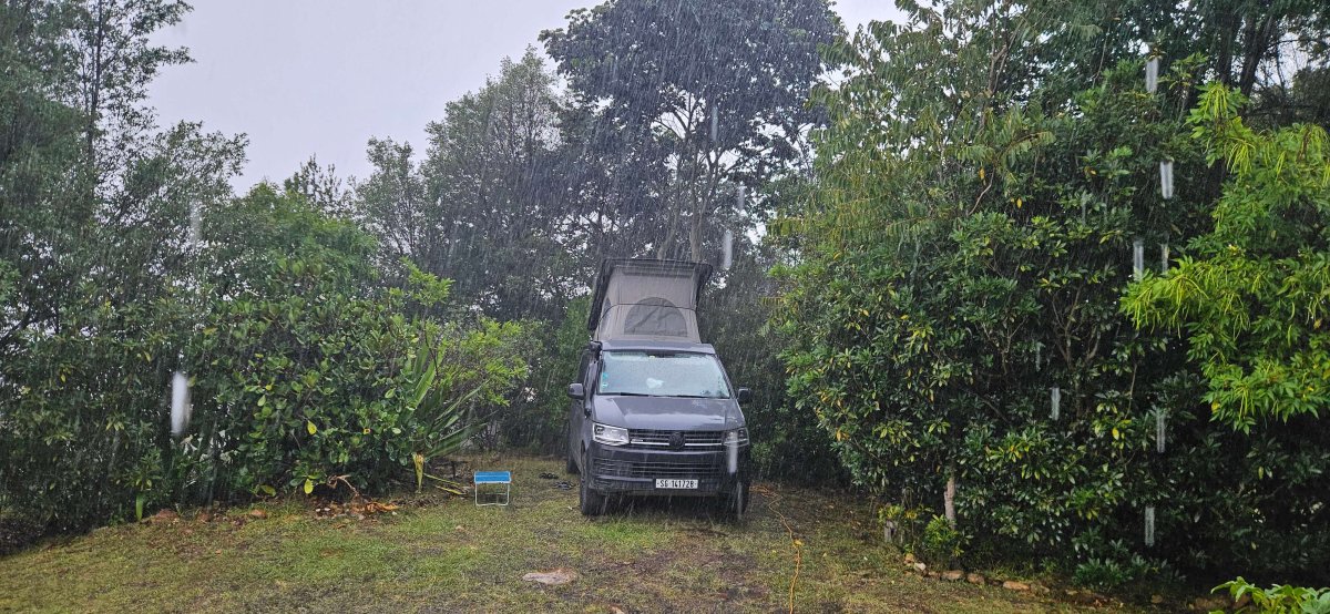 Am Abend zieht ein Gewitter auf und im Bus wird es wieder kuschelig. Ein Gewitter haben wir schon lange nicht mehr gehört. Aber ja, im April bis Mai ist in Kolumbien die Regenzeit. An den Regen müssen wir uns wohl die nächste Zeit gewöhnen.