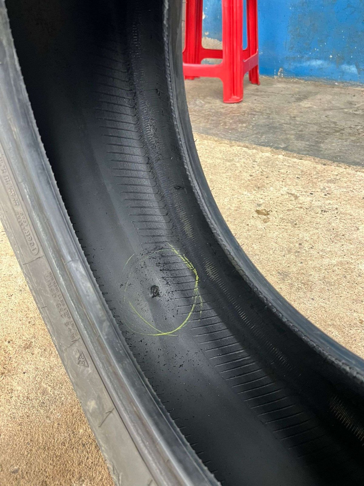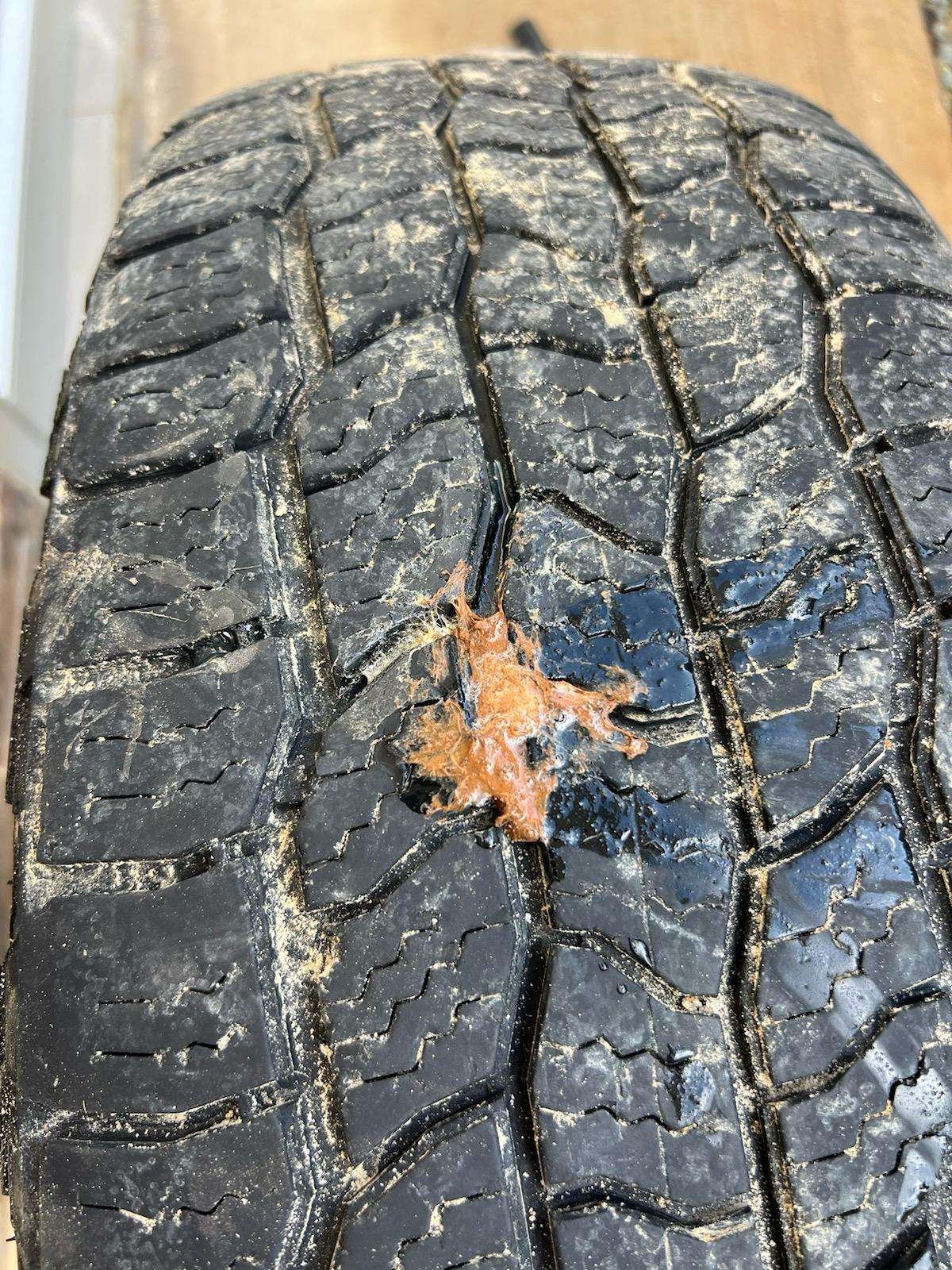 Unseren Ersatzpneu wollen wir nur im äussersten Notfall benutzen da wir in Medellín bereits neue Pneus einer anderer Marke bestellt und unser unbenutztes Ersatzrad verkauft haben. Ja so war das kurz vor dem Ziel Medellín nicht geplant. Wir versuchen also den Pneu mit unserem Flickset zu reparieren. Leider ist das Loch zu gross und der «Kaugummi» zum Stopfen des Lochs flutscht einfach durch.