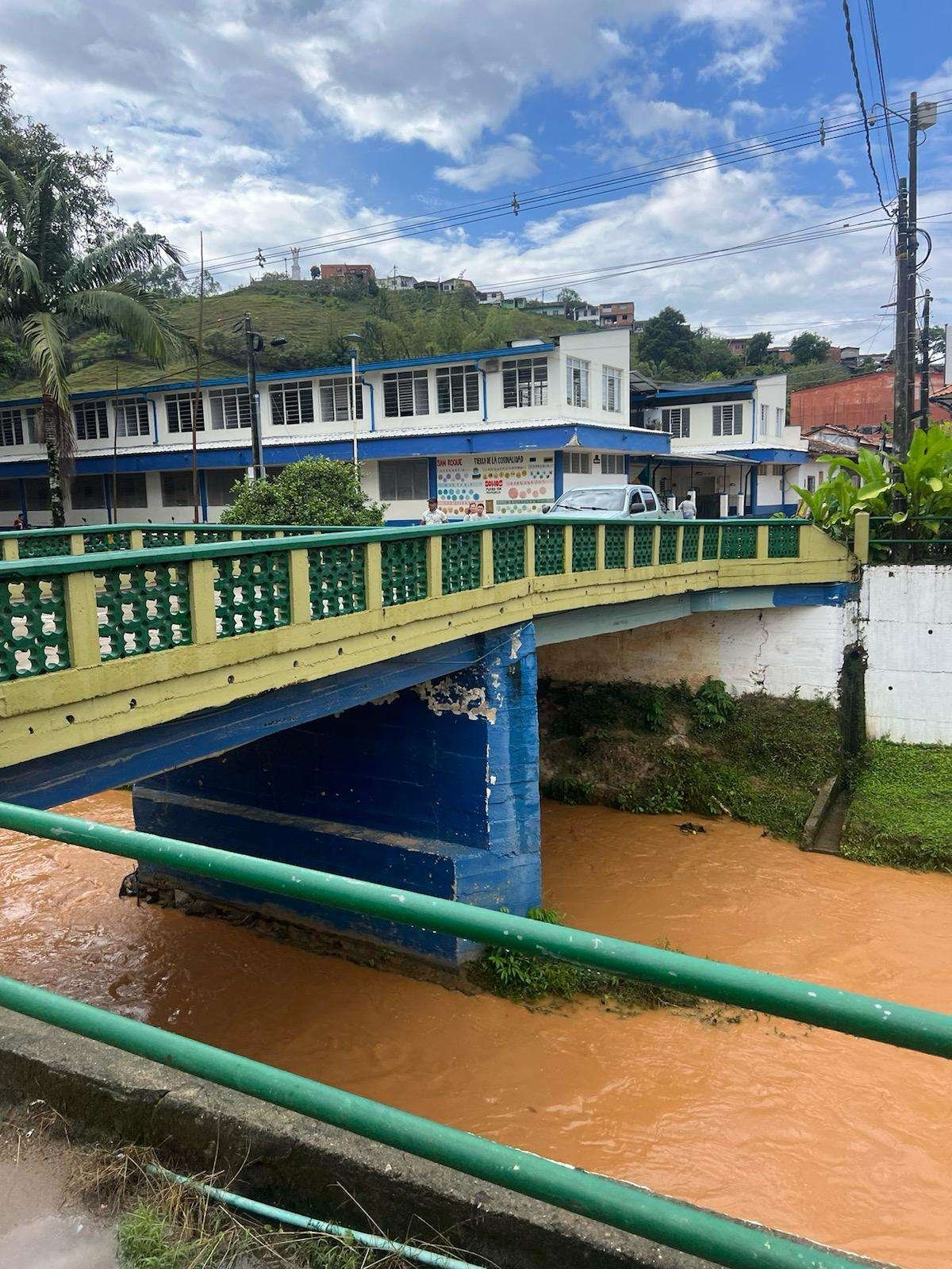 Gezwungener Weise müssen wir auf der eher engen Naturstrasse drehen und ins Dorf zurück fahren. Doch dann leuchtet das Zeichen Reifen-Druckabfall auf unserem Display auf. Auf der rechten Seite sehen wir nichts, aber hinten links ist der Pneu bereits komplett platt. Wie überall in Kolumbien sind alle super nett. Damit wir den Pneu nicht auf dieser engen Strasse wechseln müssen, dürfen wir mit Ramon in eine Wohnsiedlung reinfahren.