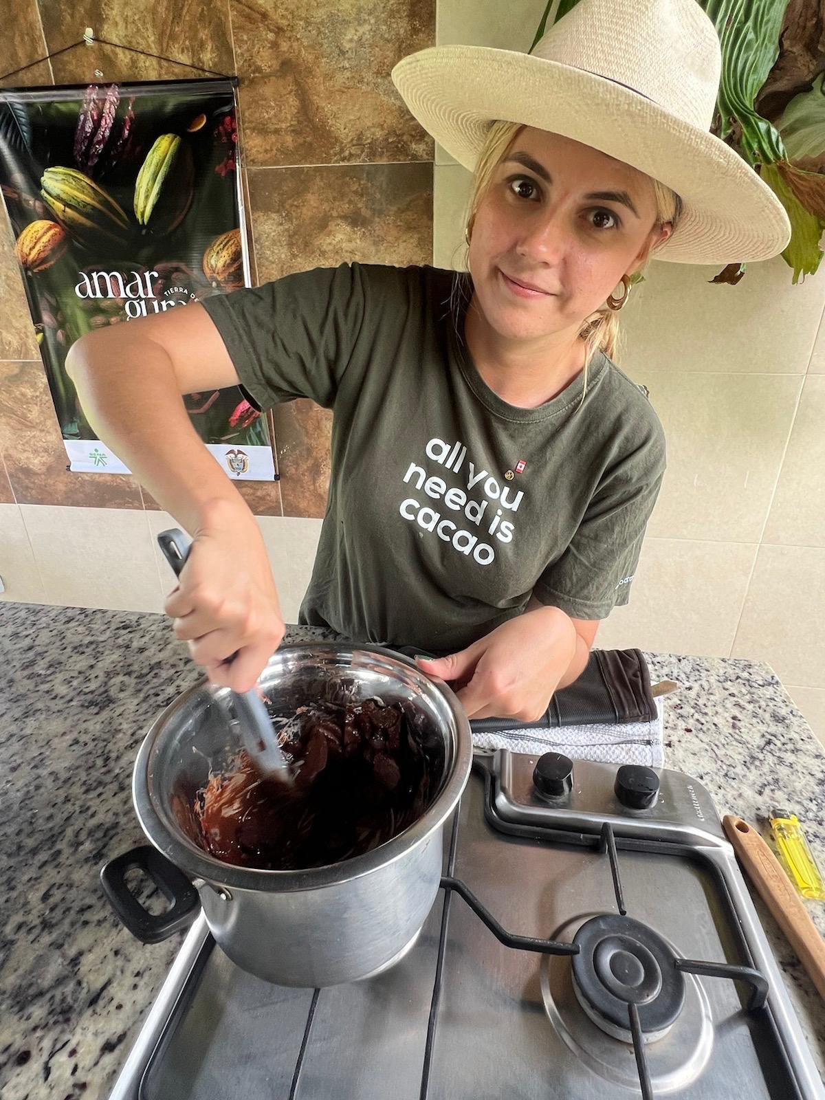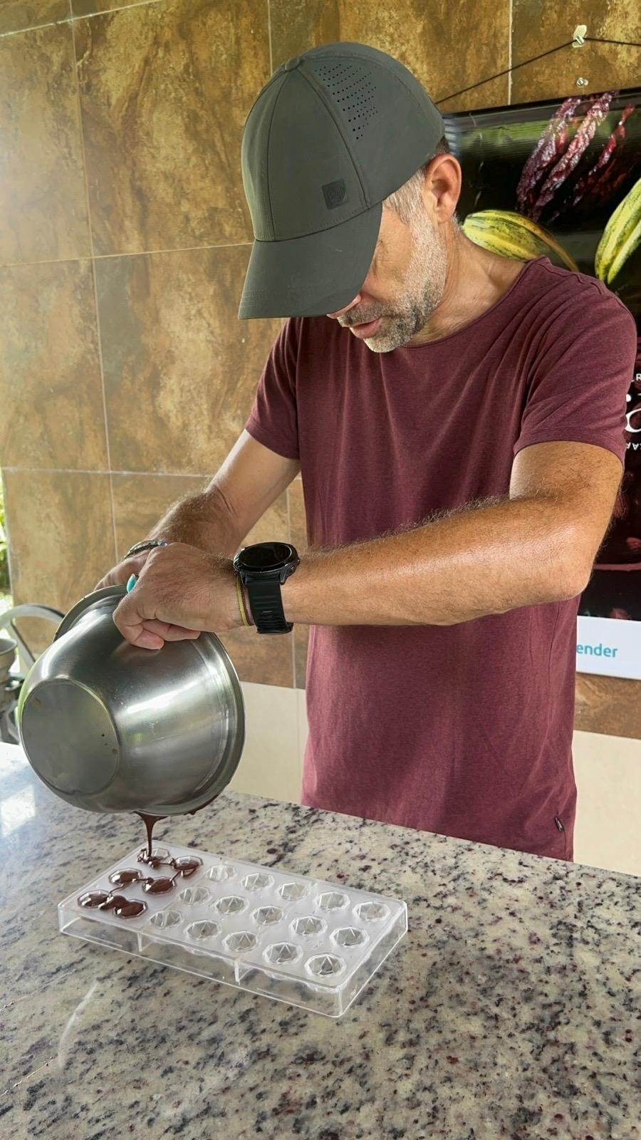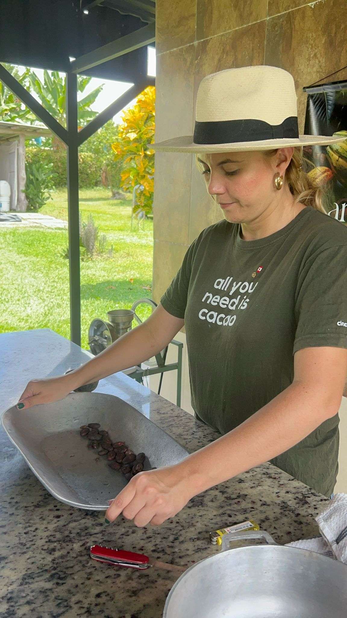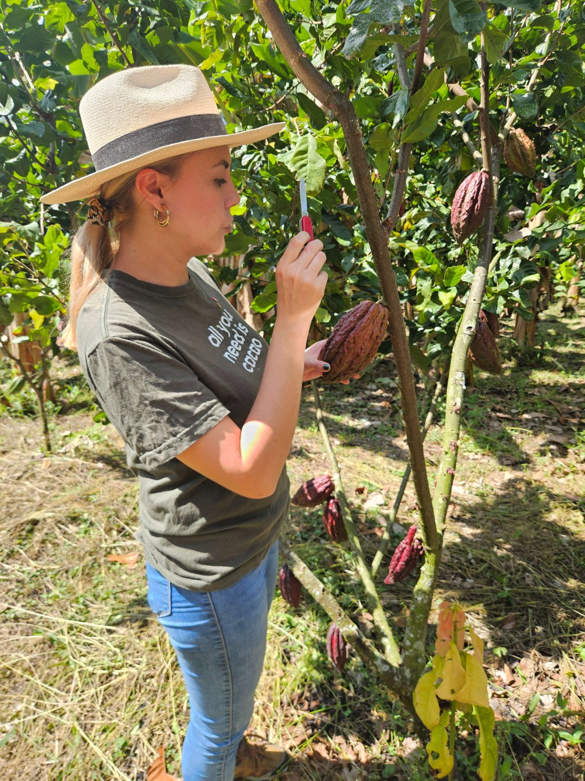 Laura, die Besitzerin der Farm Cinco de Cacao zeigt uns alles und am Schluss der Tour können wir noch unsere eigenen Praliné giessen.