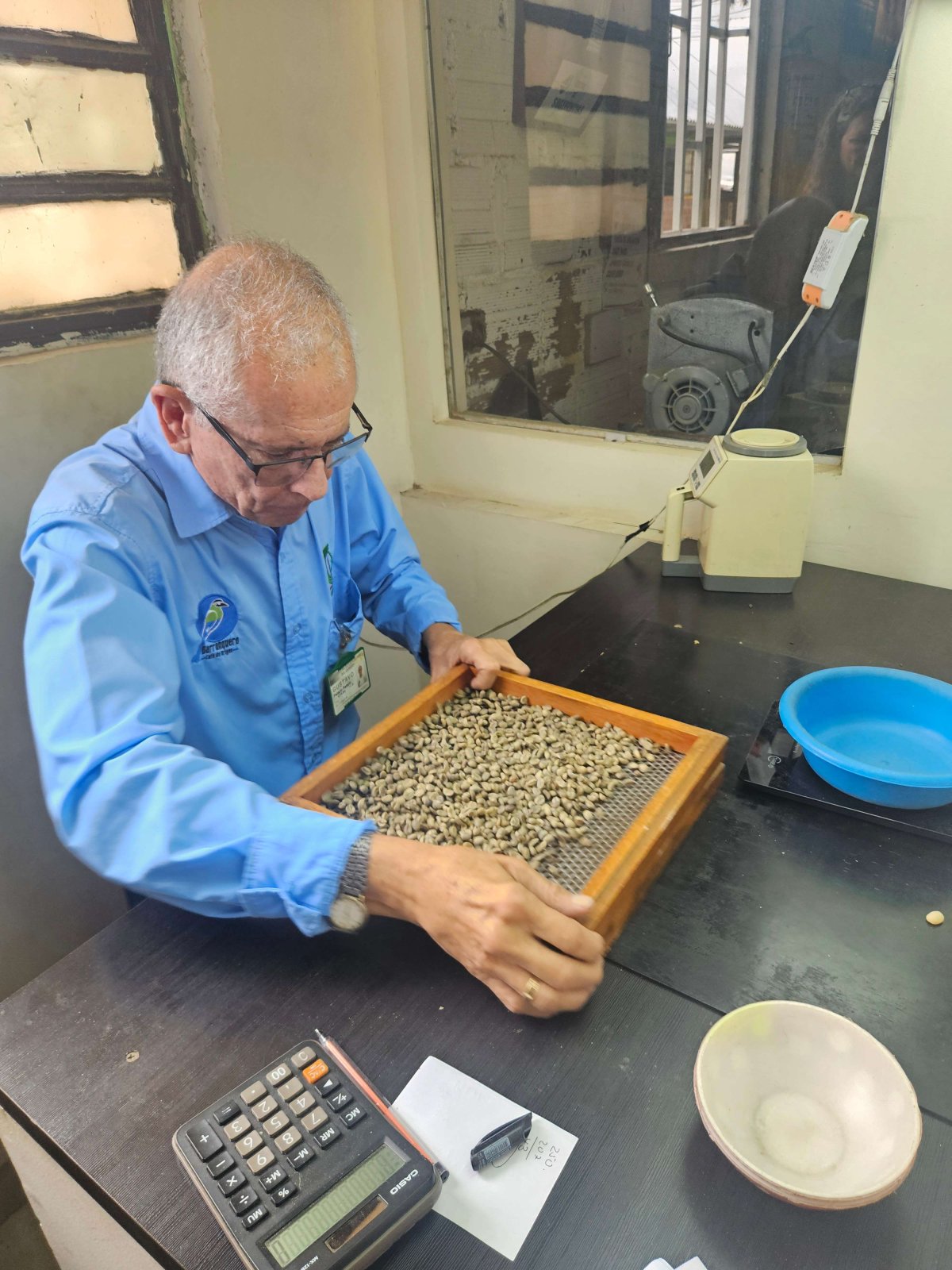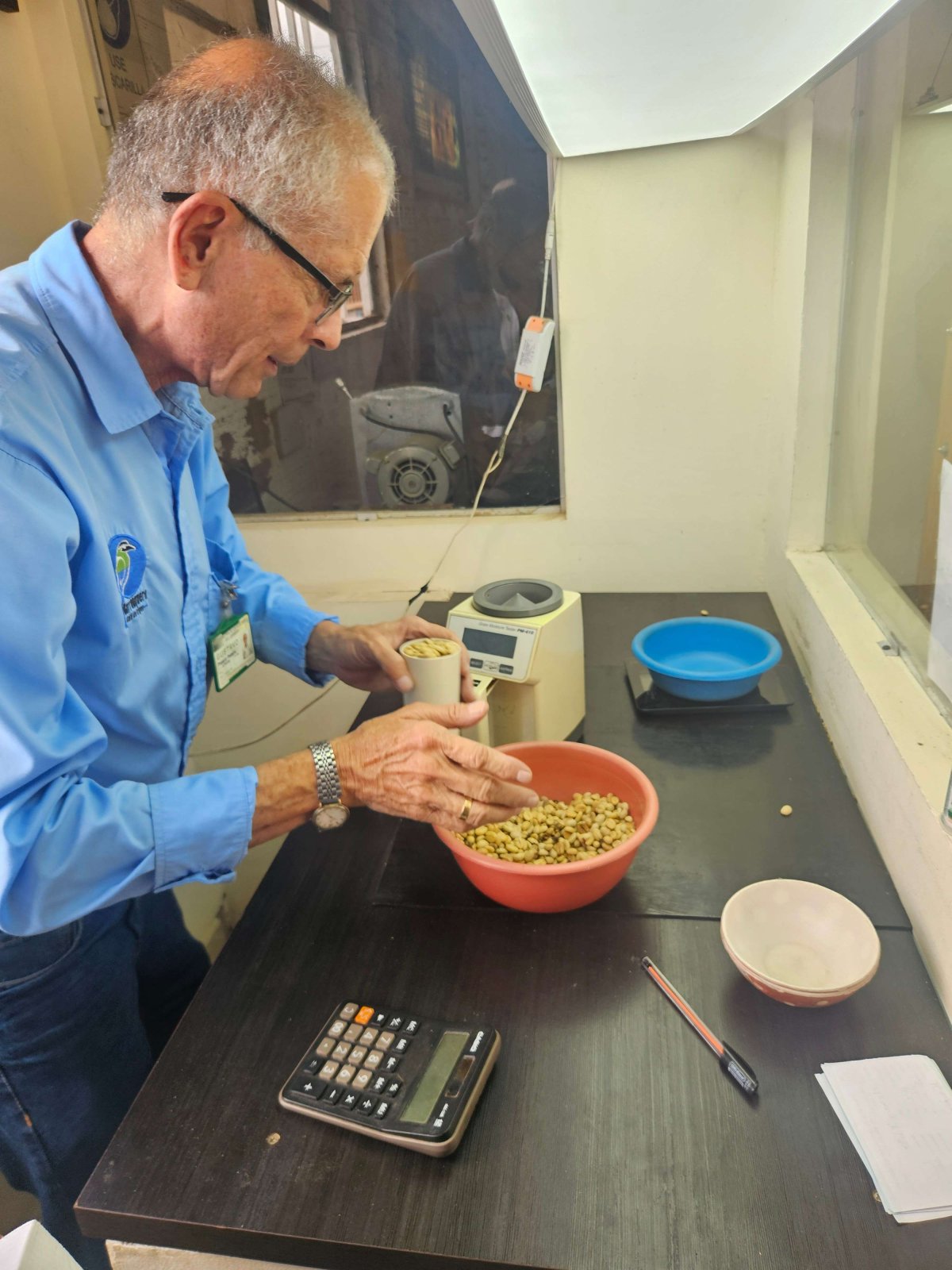 Der geerntete, geschälte, gewaschene und getrocknete Kaffee wird dann an eine Cooperativa (so etwas ähnliches wie Landi) verkauft. Die Qualität des Kaffees bestimmt den Preis – Joos fühlt sich wie zuhause beim Arbeiten da die Qualitätskontrolle ziemlich ähnlich abläuft wie bei seinen Bohnen und Linsen 😊.