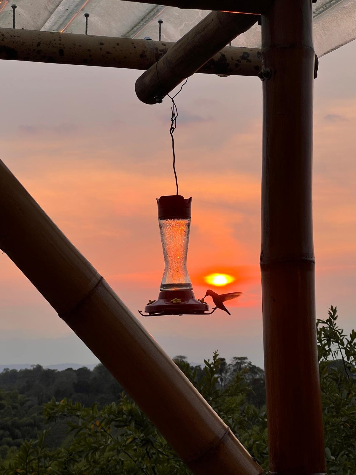 Karin hat aus versehen den Schlüssel ihres Zimmers von der Finca bei Filandia mitgenommen. Offensichtlich haben ihr die Colibris auf der Finca so gut gefallen, dass sie wieder zurück möchte.
