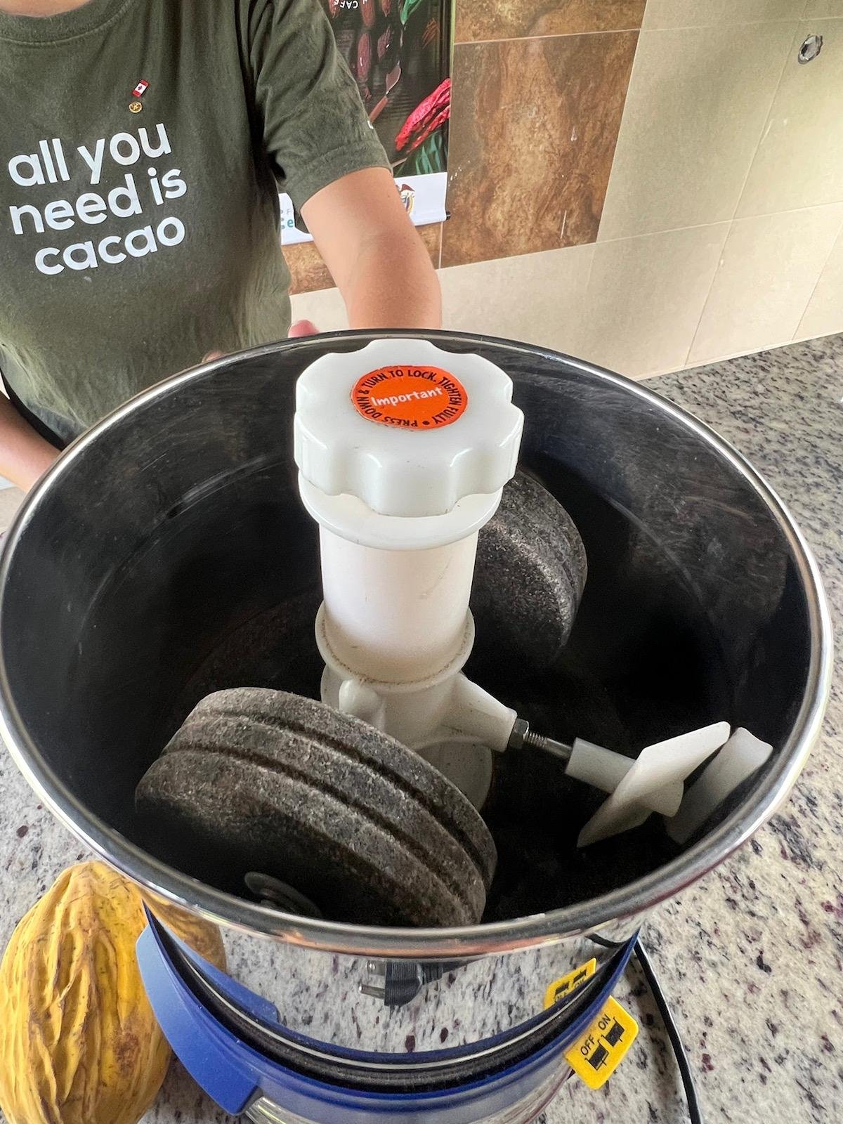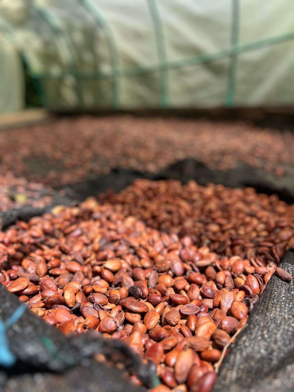 Nach der Ernte werden die Cacao-Kernen fermentiert, geröstet, geschält und dann gemörsert. Wie schon beim Kaffee ist der Röstprozess beendet wenn die Kernen das Popcorn Geräusch von sich geben.