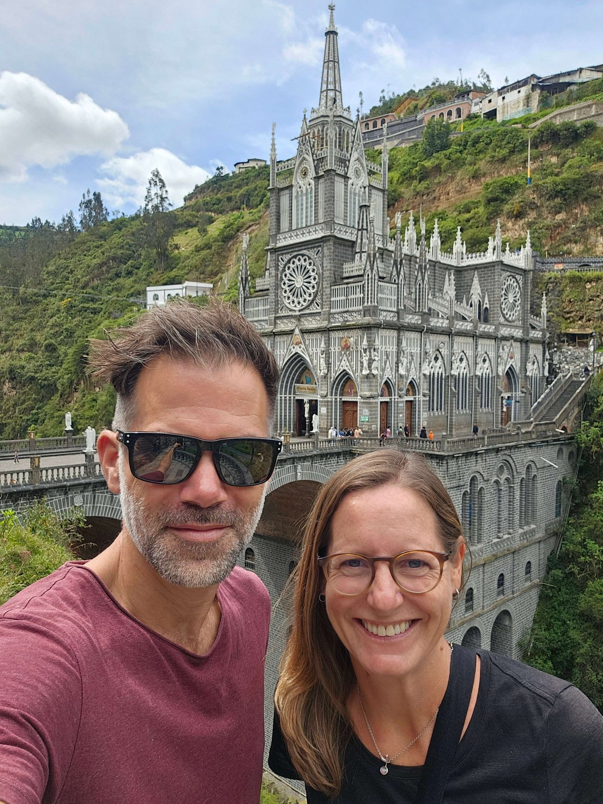 In Las Lajas steht eine an den Berg gebaute Kirche. Nach einer Stunde hat man diese normal gesehen. Wir treffen aber auf ein supernettes Ecuadorianisches Pärchen die uns gar nicht mehr weiter lassen wollen. Sie geben uns ganz viele Tipps was wir alles in Ecuador unternehmen können. Sie sind hier wegen des Geburtstages von Louis. Seit Jahren kommt er an jedem Geburtstag zur Kirche und macht immer das gleiche Foto von sich selbst. Irgendwie herzig.