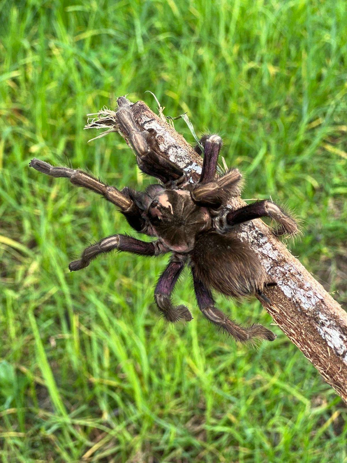Wir haben ein neues Haustier :-). Die Tarantel hat es sich bei unserem Vorderrad gemütlich gemacht. Da wollten wir sie aber nicht wirklich behalten.
